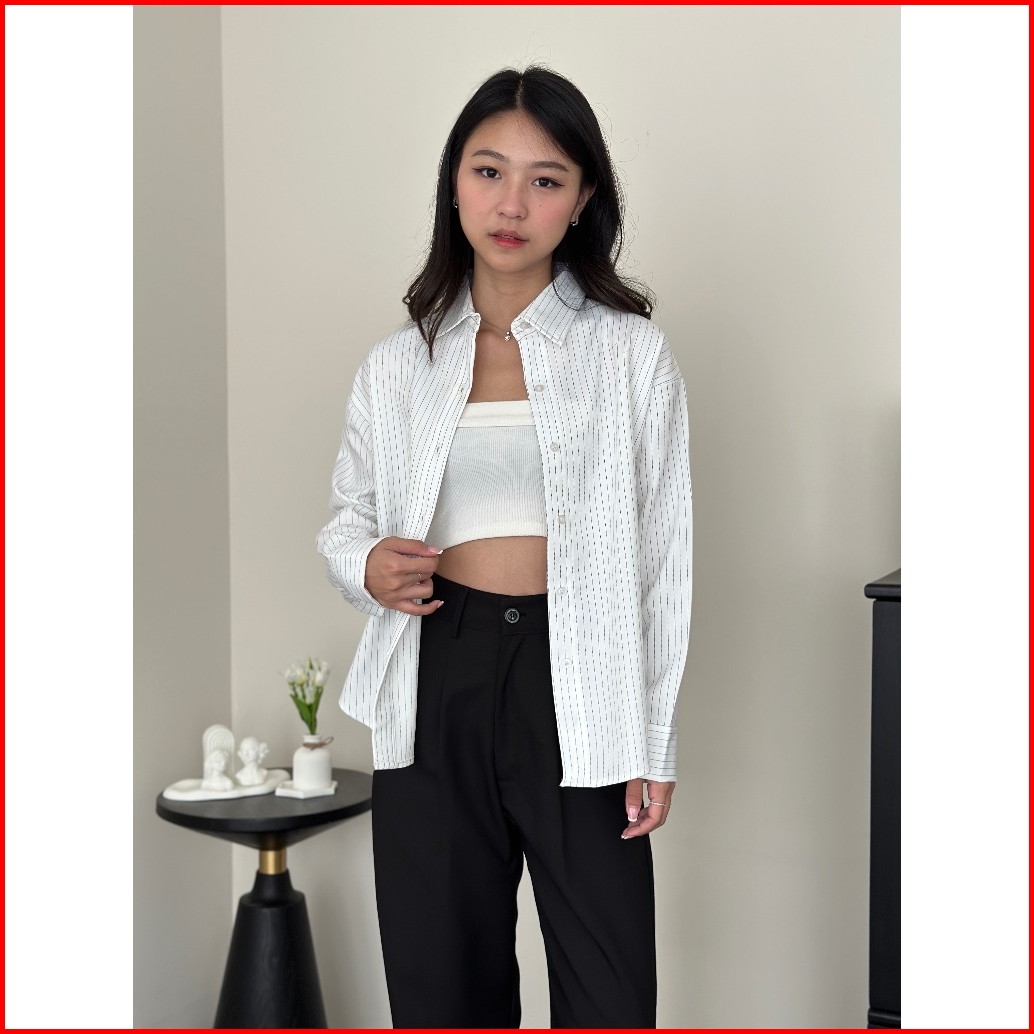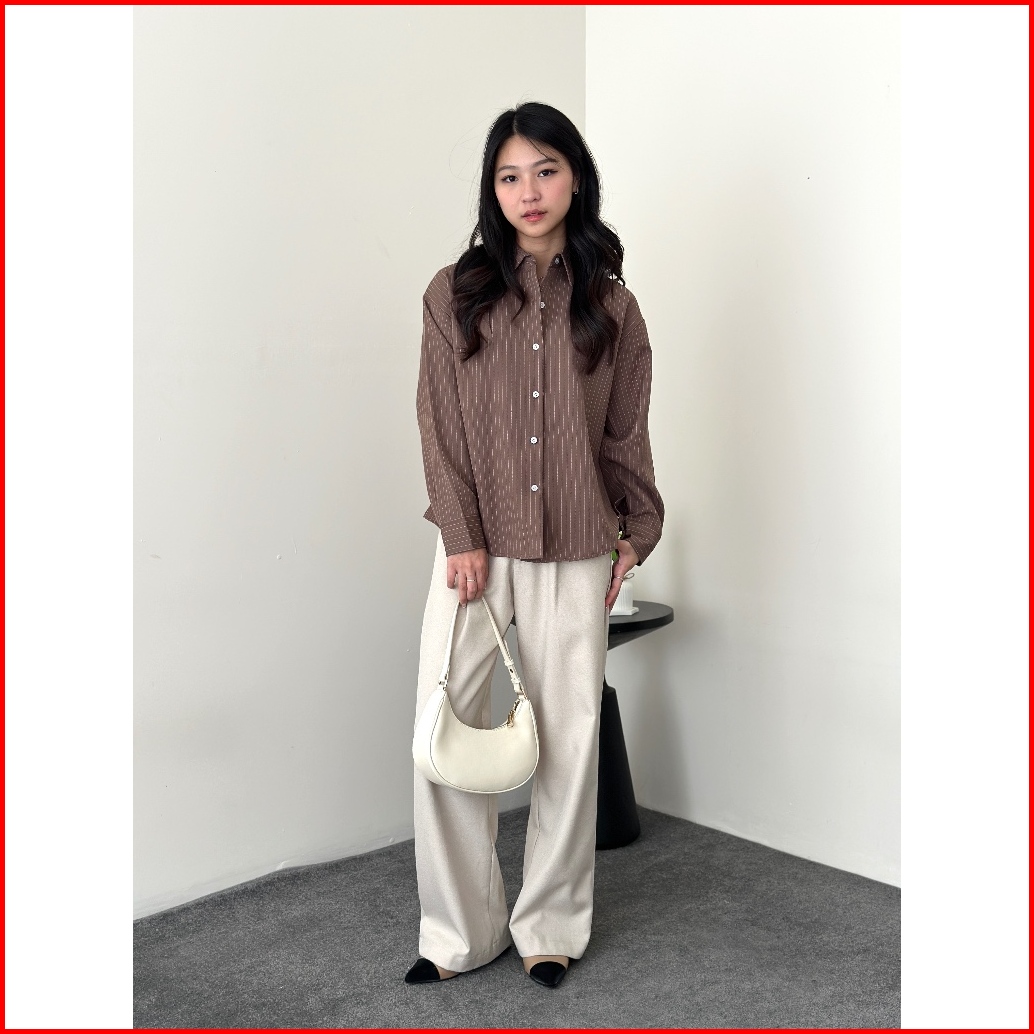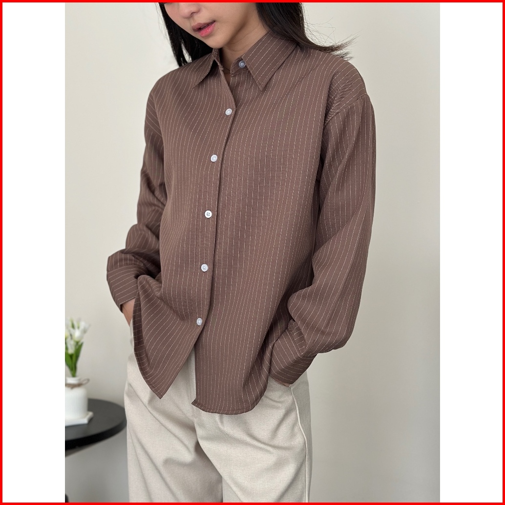 Asoka Kathy Shirt 880 - Women Striped Collar Shirt Long Sleeve - Atasan Kemeja Wanita Flowly