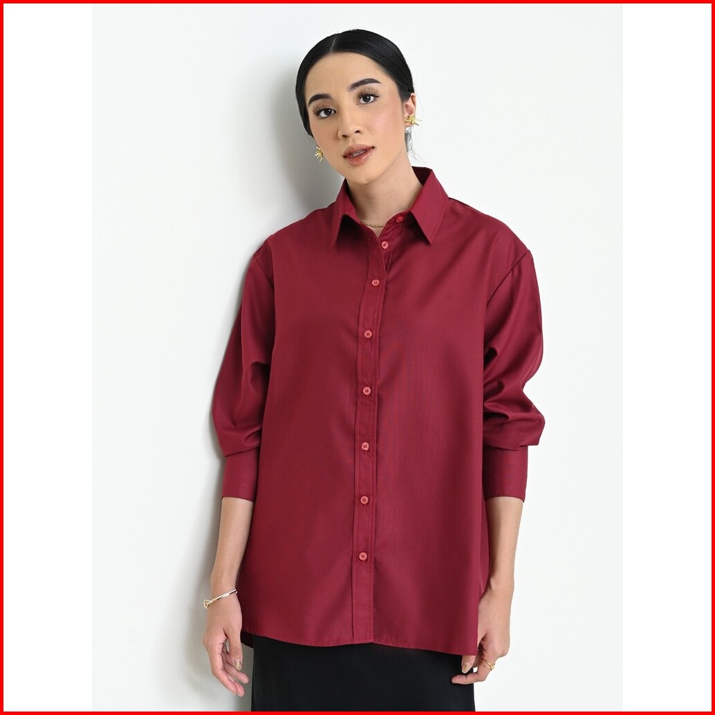 Geulis.id Piper Shirt Basic Series Kemeja Wanita Atasan Wanita Kemeja Merah 16 Warna