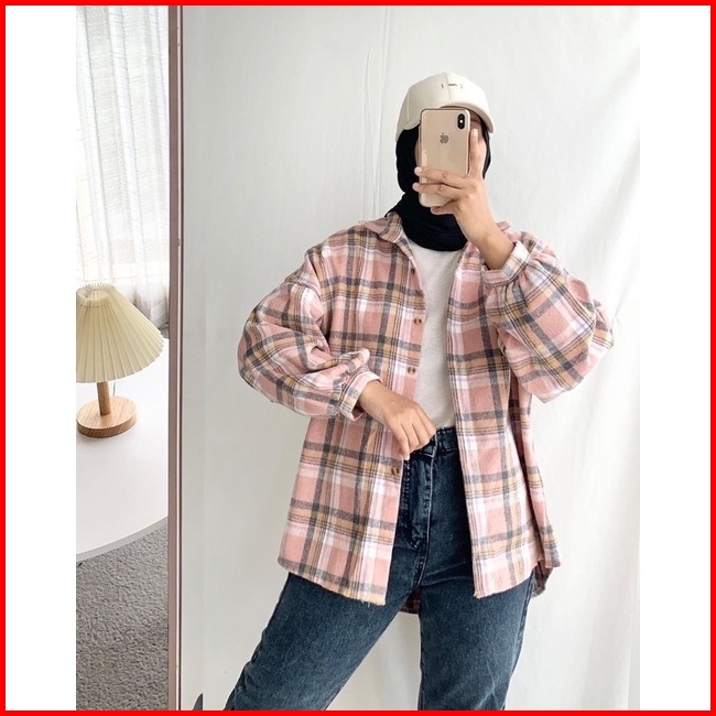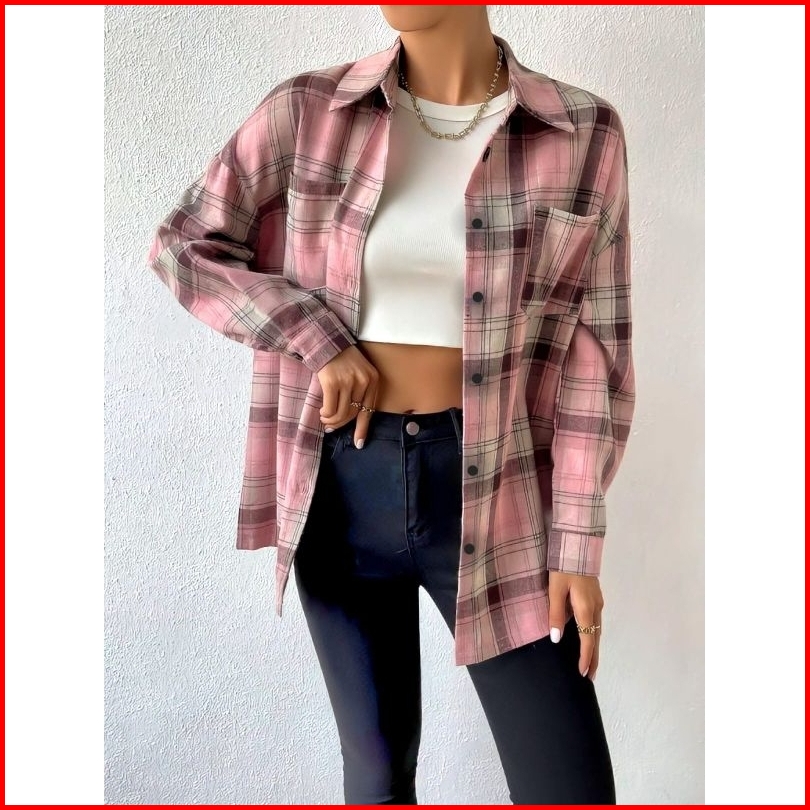 Kemeja Wanita Flanel Lengan Panjang Atasan Flannel Wanita Kotak Kotak