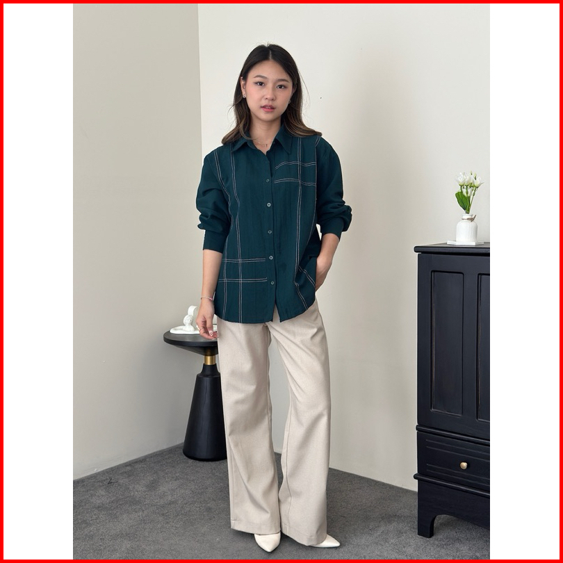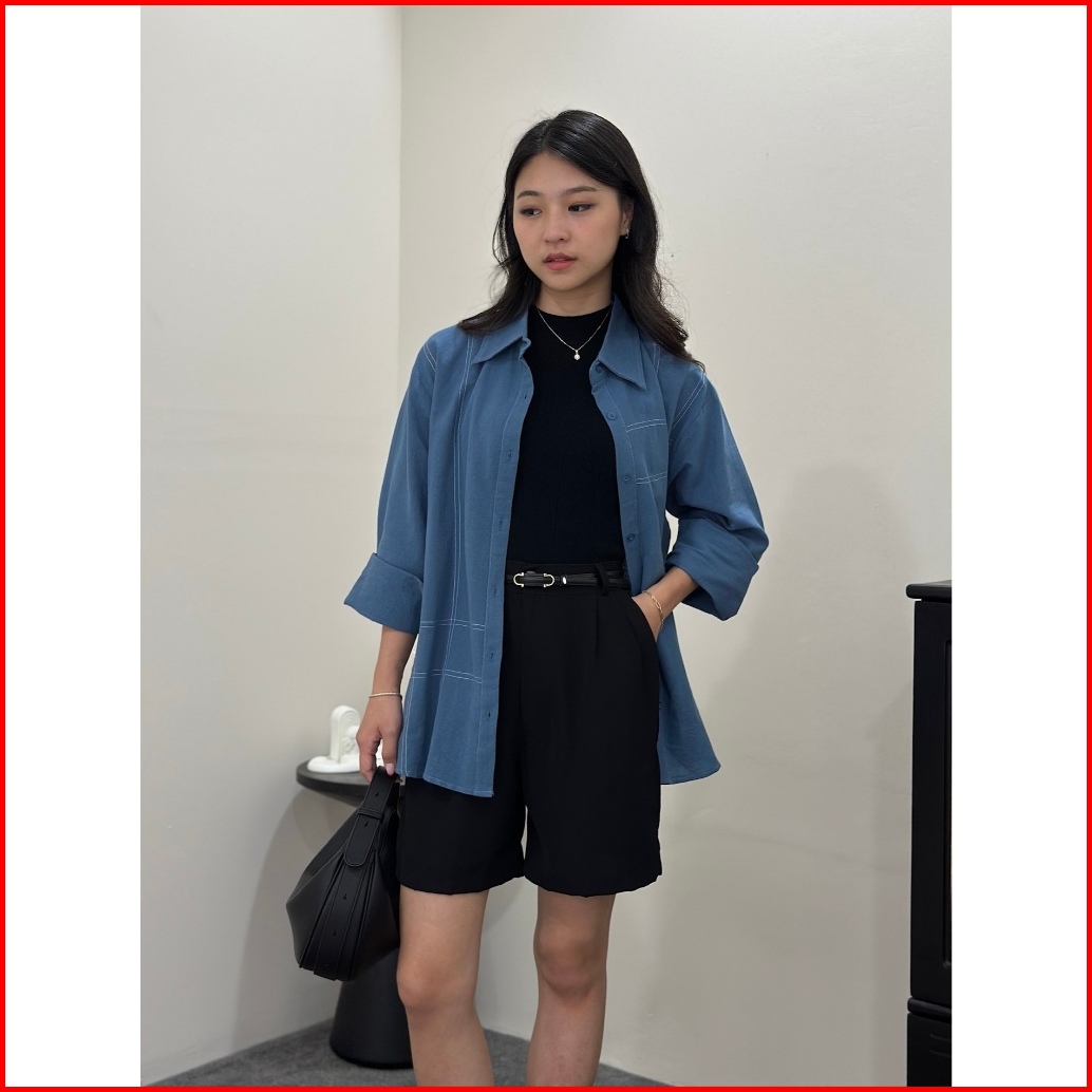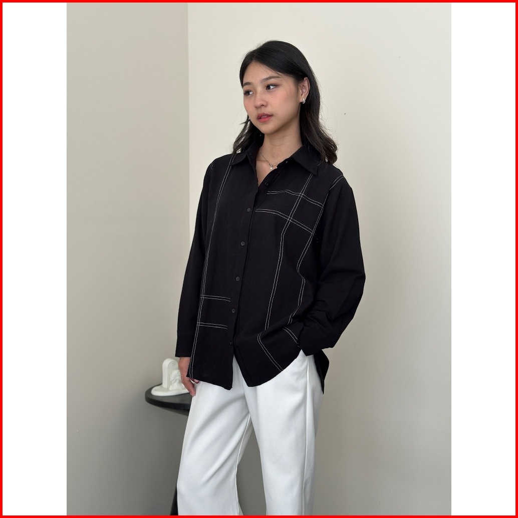 Asoka Twila Shirt 2289 - Contrast Stitch Oversize Blouse Long Sleeve - Atasan Wanita Kemeja