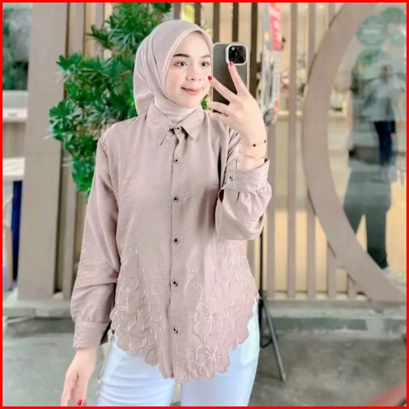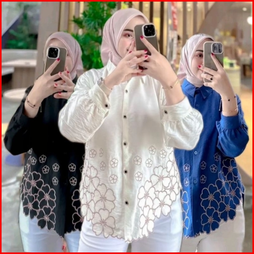 Laura Kemeja Atasan Blouse Wanita Bordir Bunga Korean Style