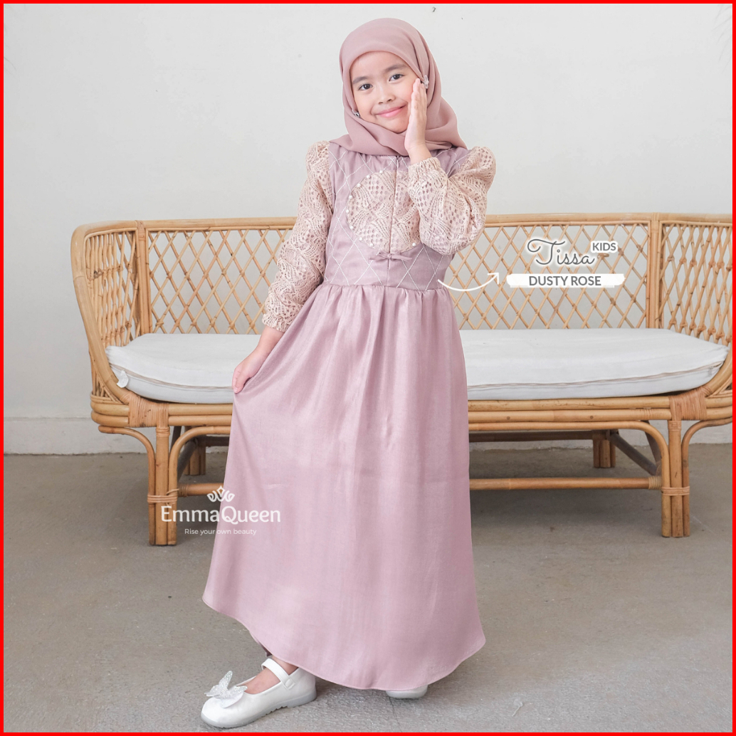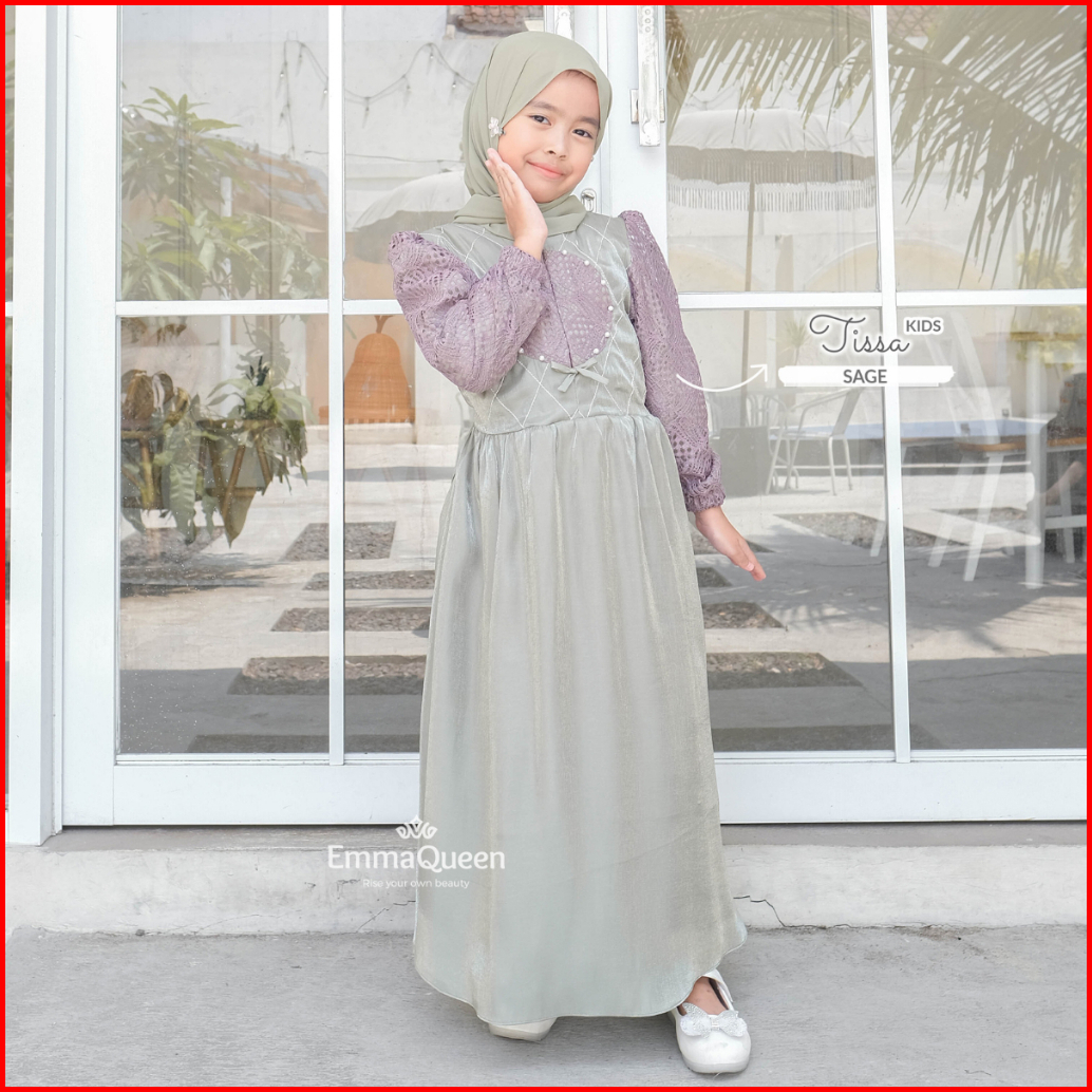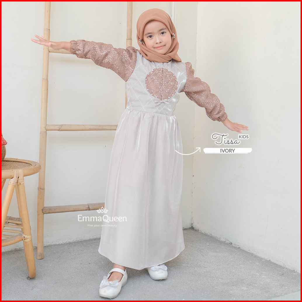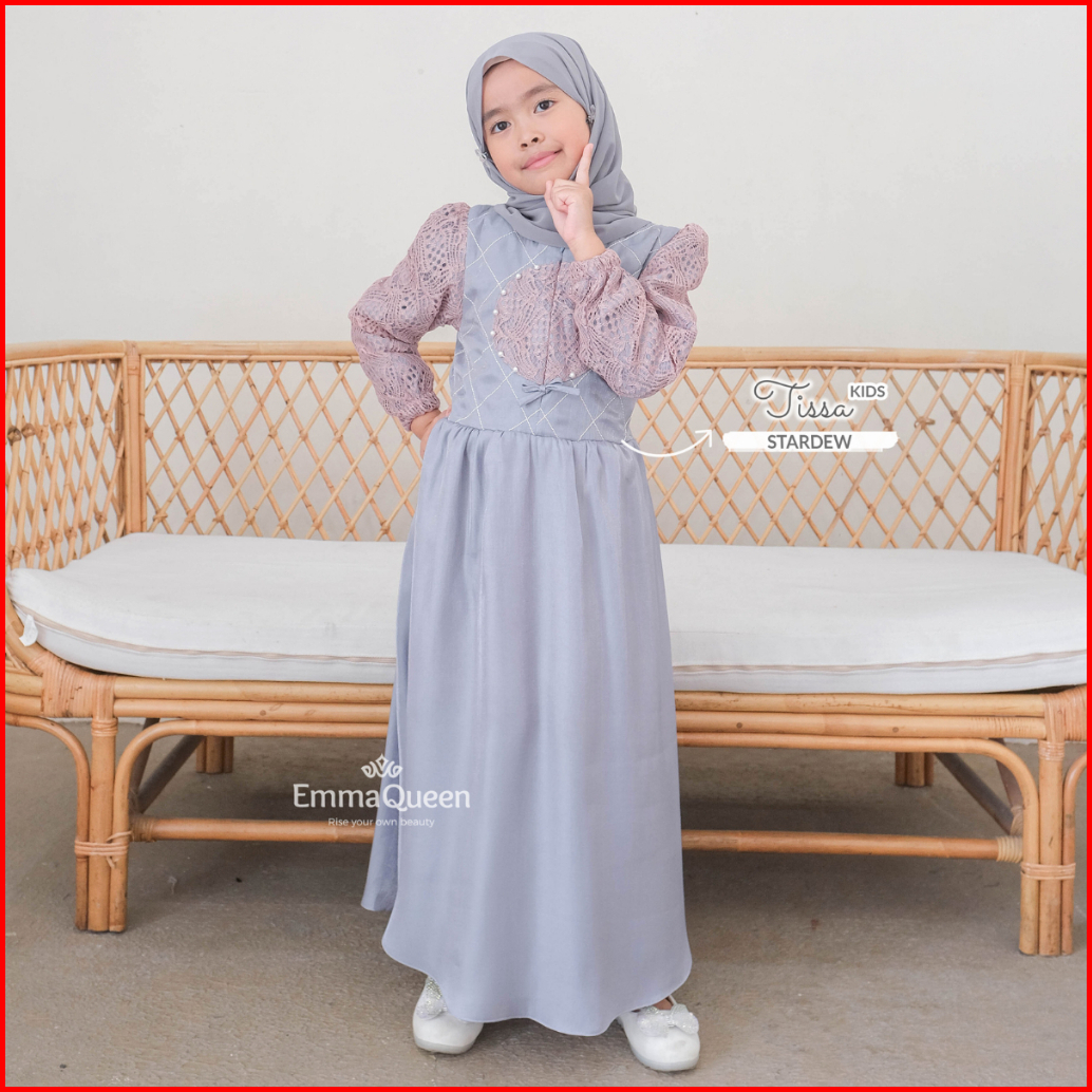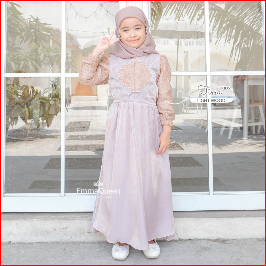 Emmaqueen - Dress Tissa Kids Gamis Anak Perempuan Kondangan Shimmer Kombinasi Brukat Mutiara Xs Xxl