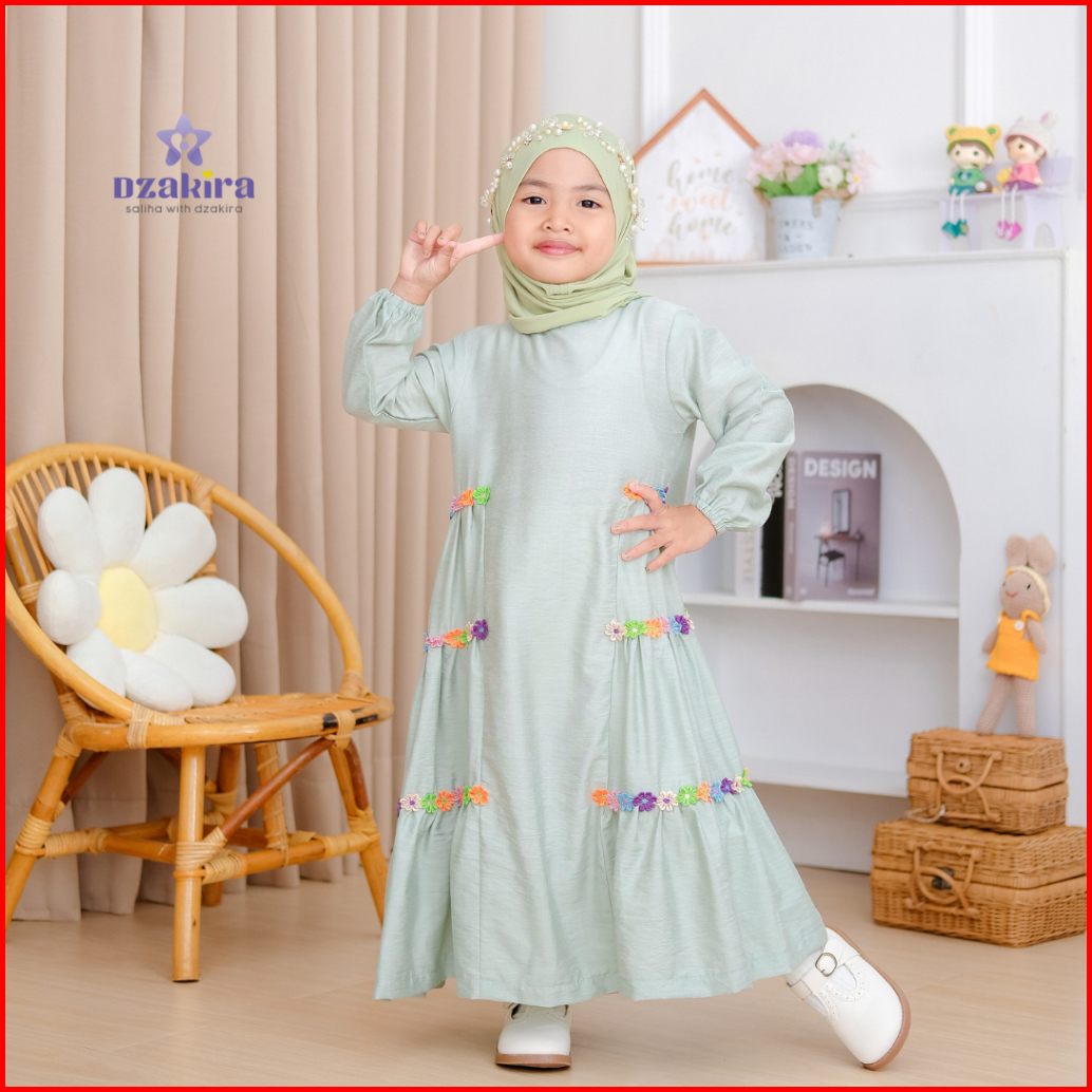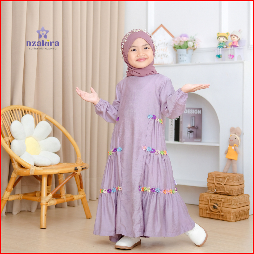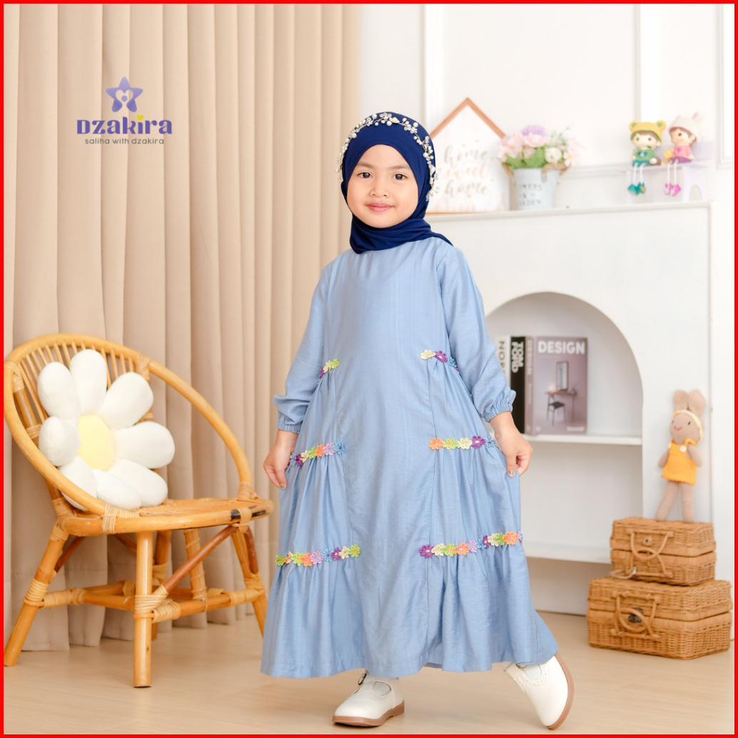 Gamis Shenna Ruple Bunga 0-10thn Bahan Polo Linen By Dzakira