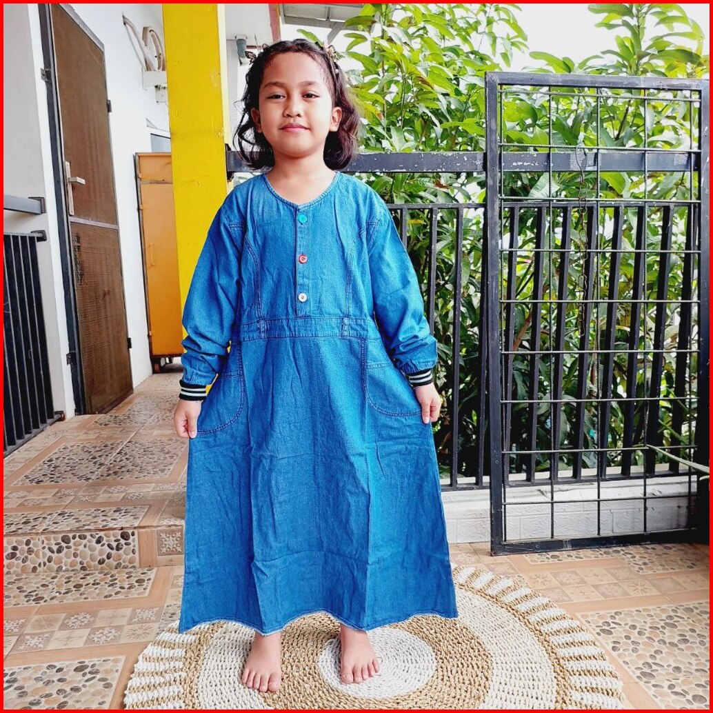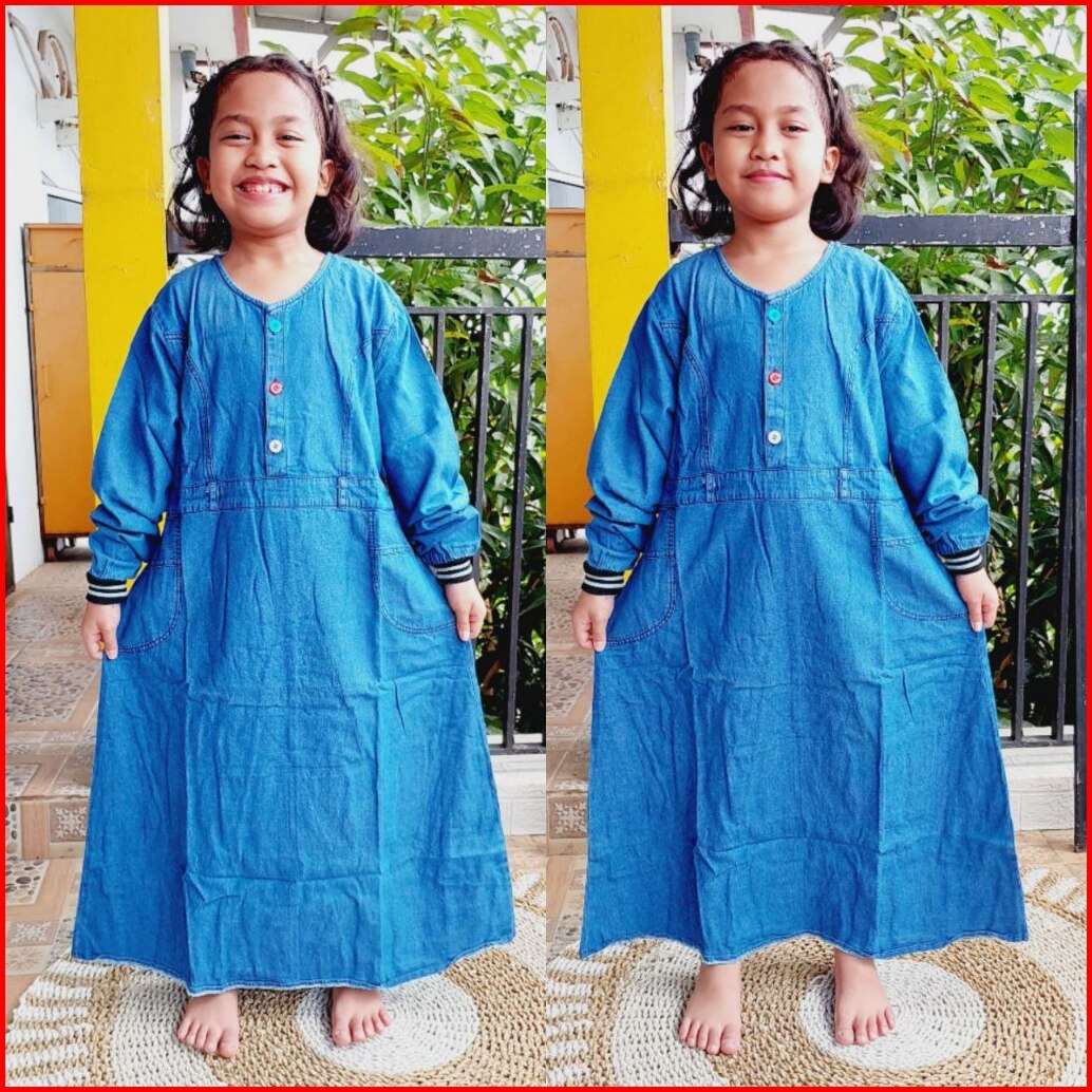 Gamis Jeans Anak Polos Usia 3-12 Thn
