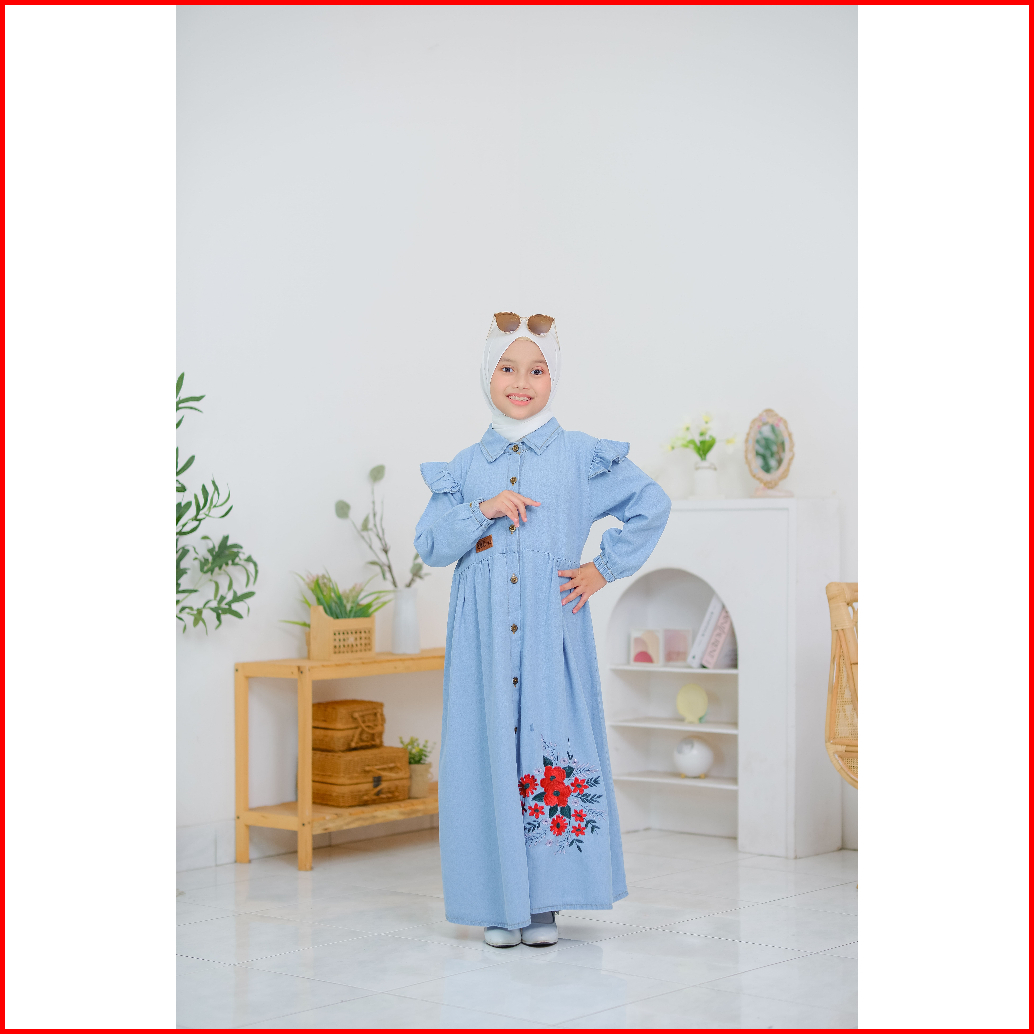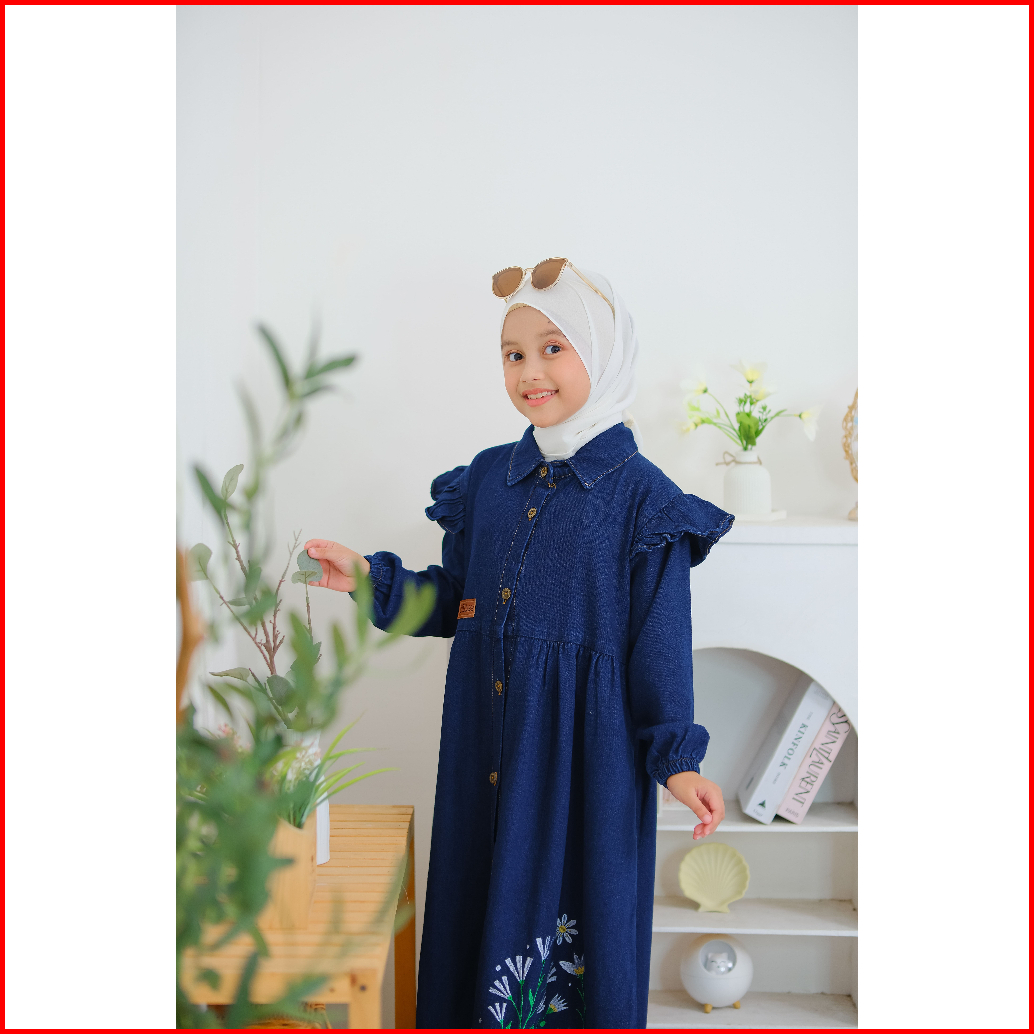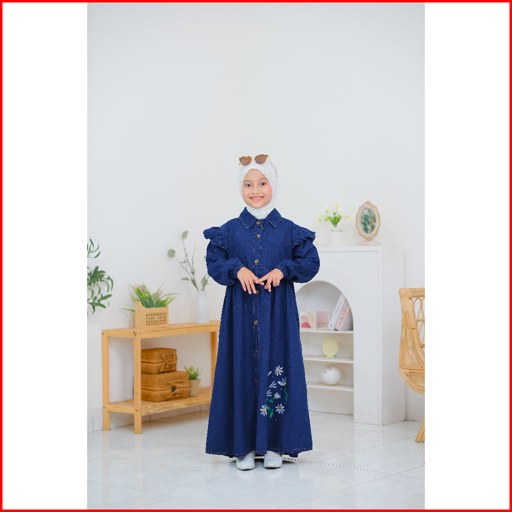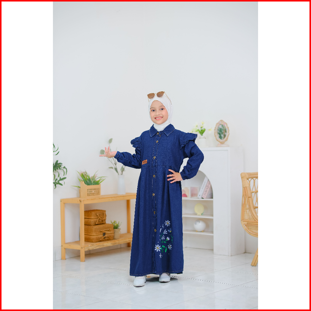 Gamis Denim Jeans Bordir Anak Perempuan Usia 4 Sampai 12 Tahun