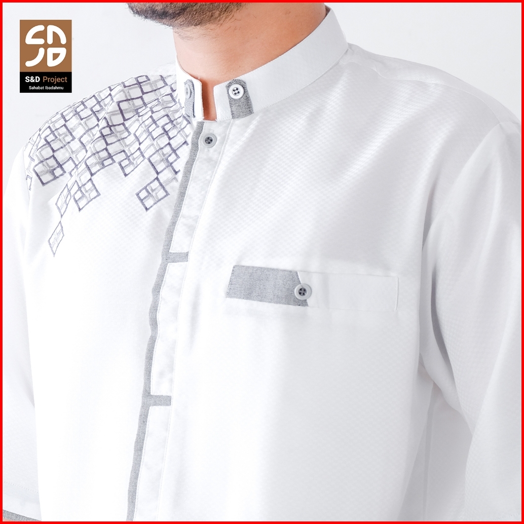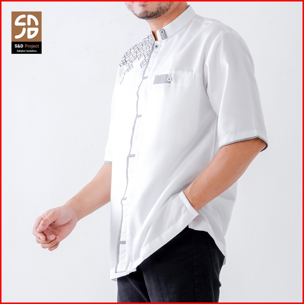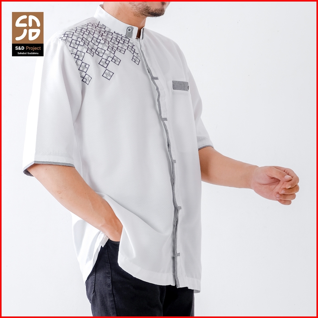 S D Project Baju Koko Polikatun Bordir Lengan Pendek S M L Xl 2xl 3xl 4xl - Seri 24 Putih Tulang