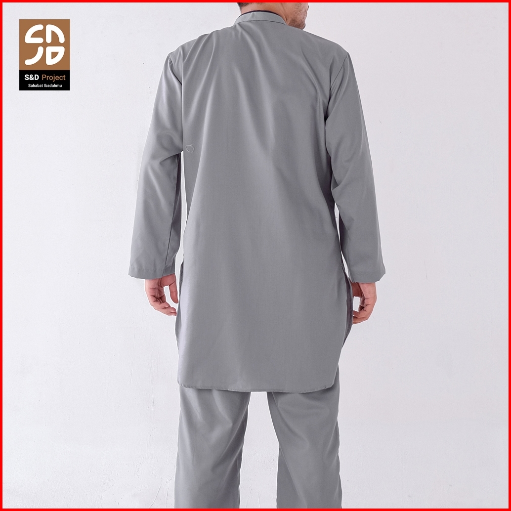 S D Project Setelan Kurta Koko Katun Toyobo Polos Jumbo Lengan Panjang Kerah Mandarin S M L Xl Xxl 3xl 4xl - Abu Tua