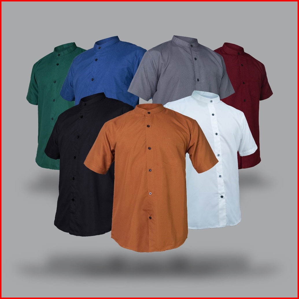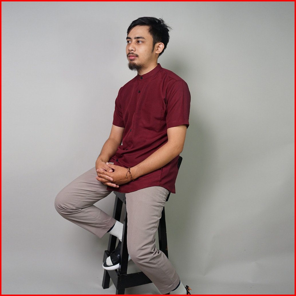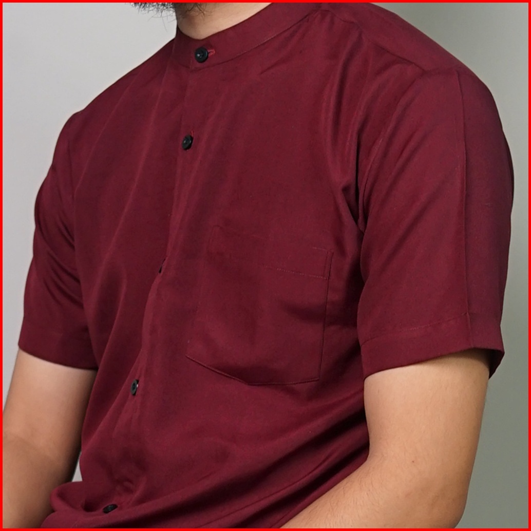 Khaf97 Koko Pria Lengan Pendek Kemko Polos Faizan Maroon