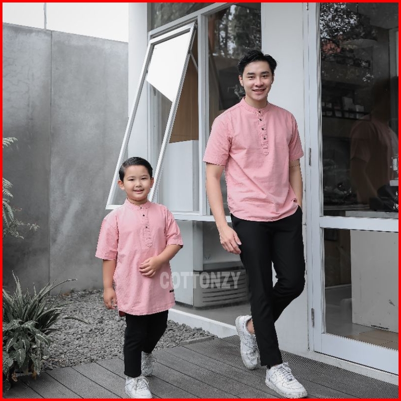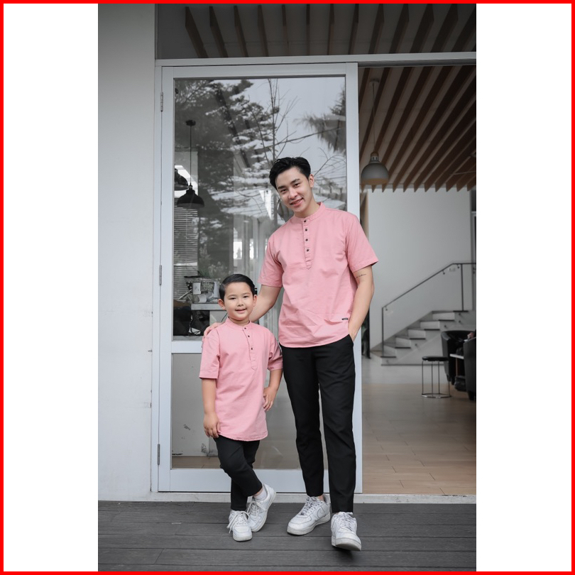 Kemeja Koko Couple Ayah Dan Anak Warna Pink Peach Usia Anak Remaja Dewasa Big Size
