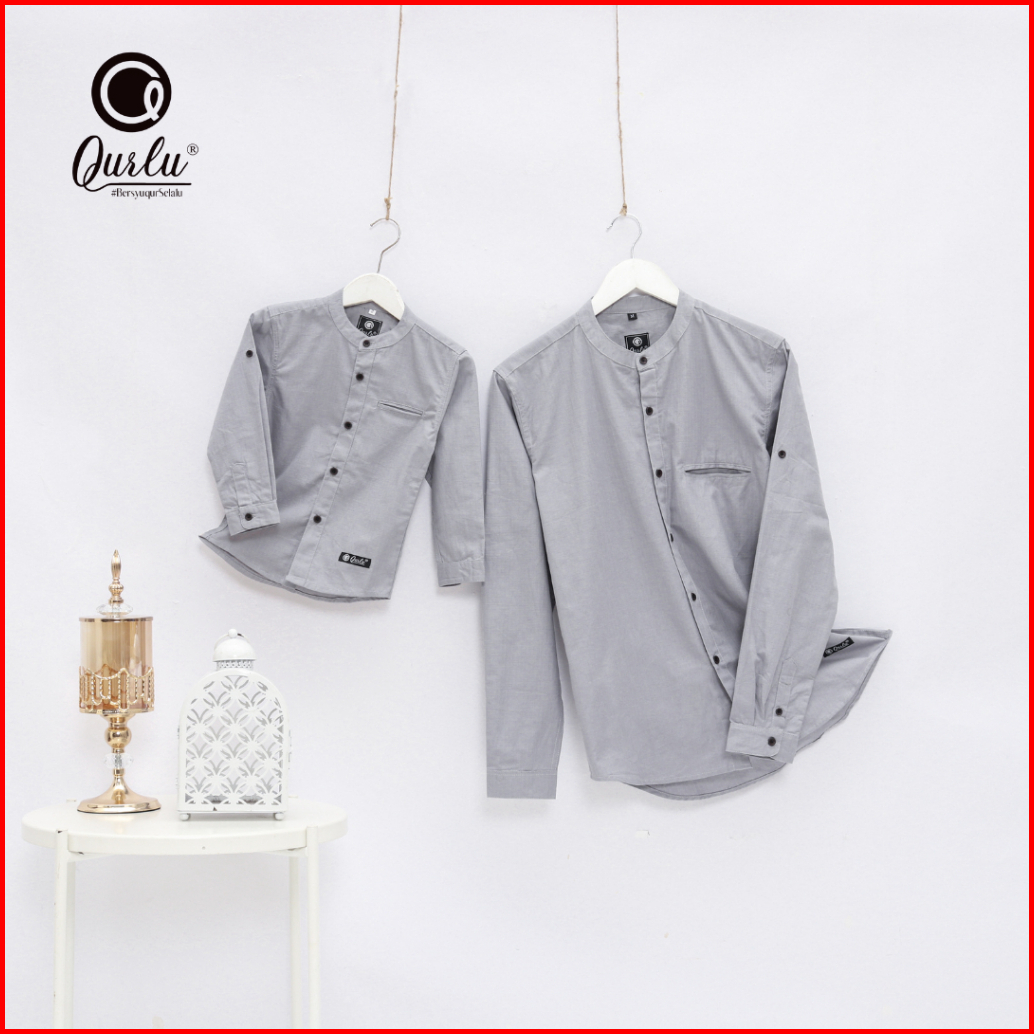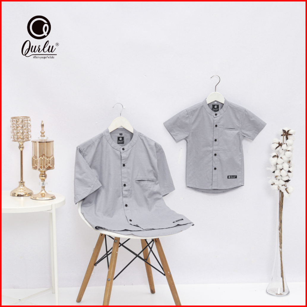 Qurlu - Kemeja Koko Dewasa Anak Warna Abu Silver Baju Couple Ayah Dan Anak Laki-laki Baju Koko Pria