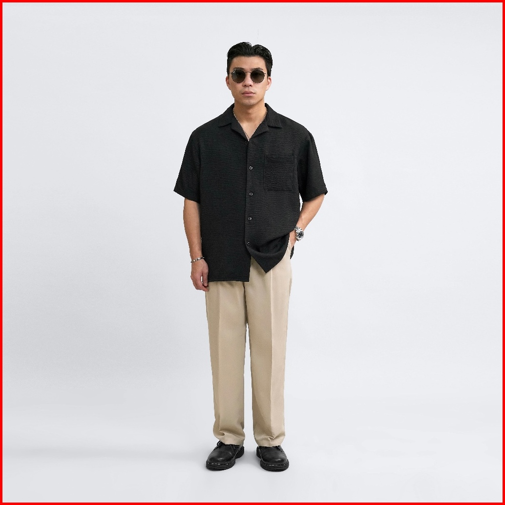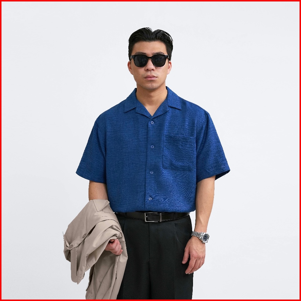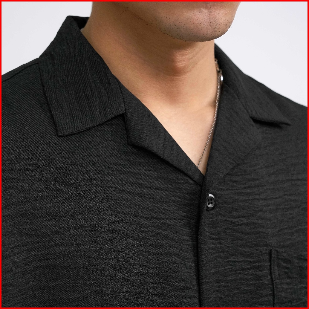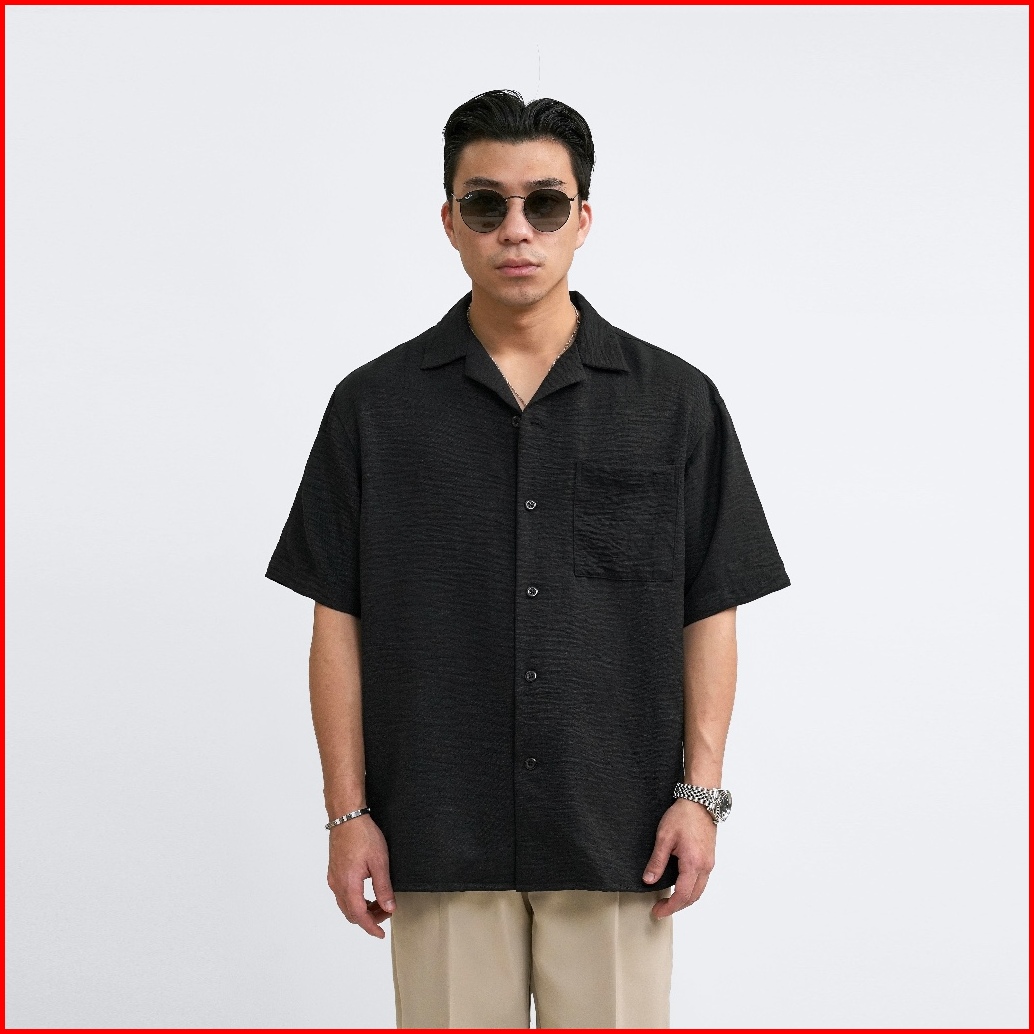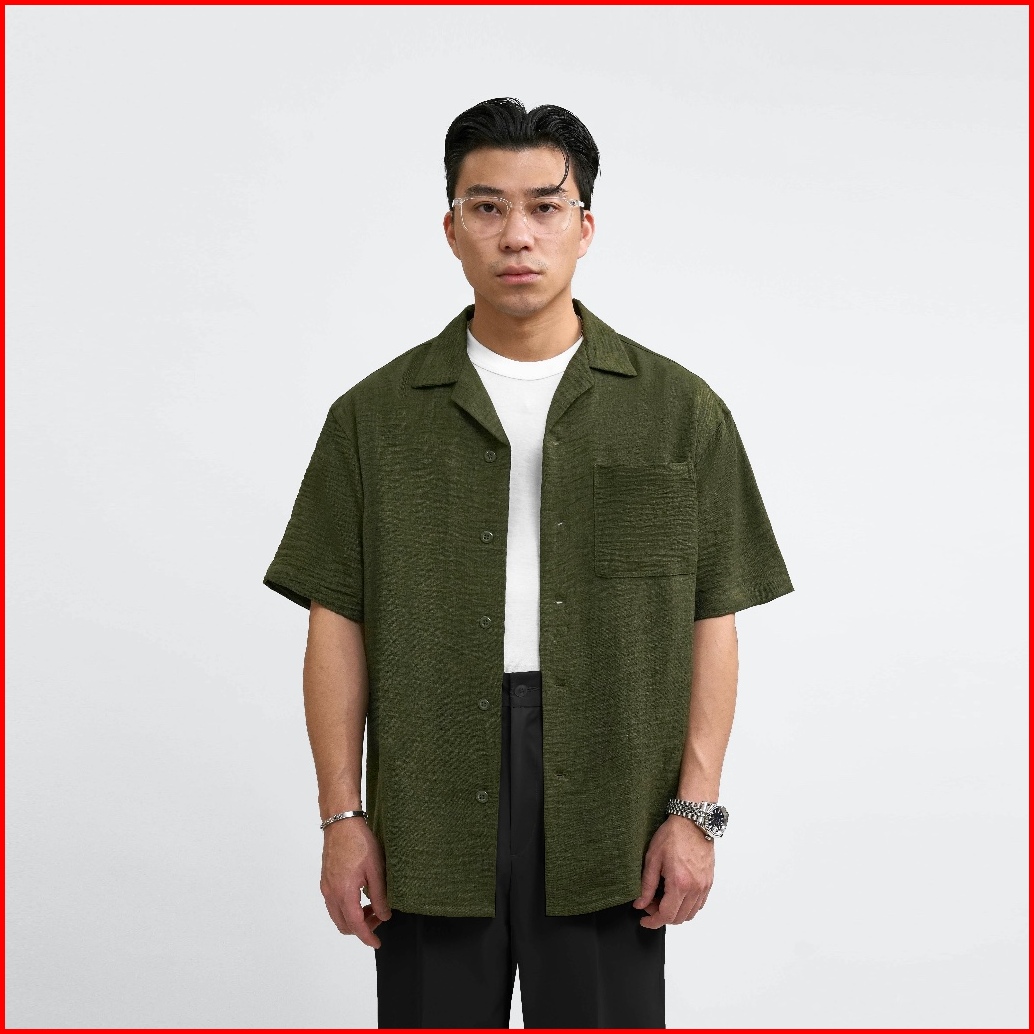 Kamaja - Cuban Bowling Boxy Oversized Linen Shirt Kemeja Pria Kerah Terbuka Lengan Pendek