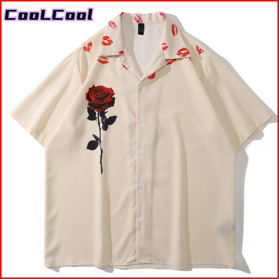 New 2022 Oversize New Street Style Fashion Women Men Casual Tops Loose Short Sleeve Aesthetic Cuban Lapel Shirt Kemeja P
