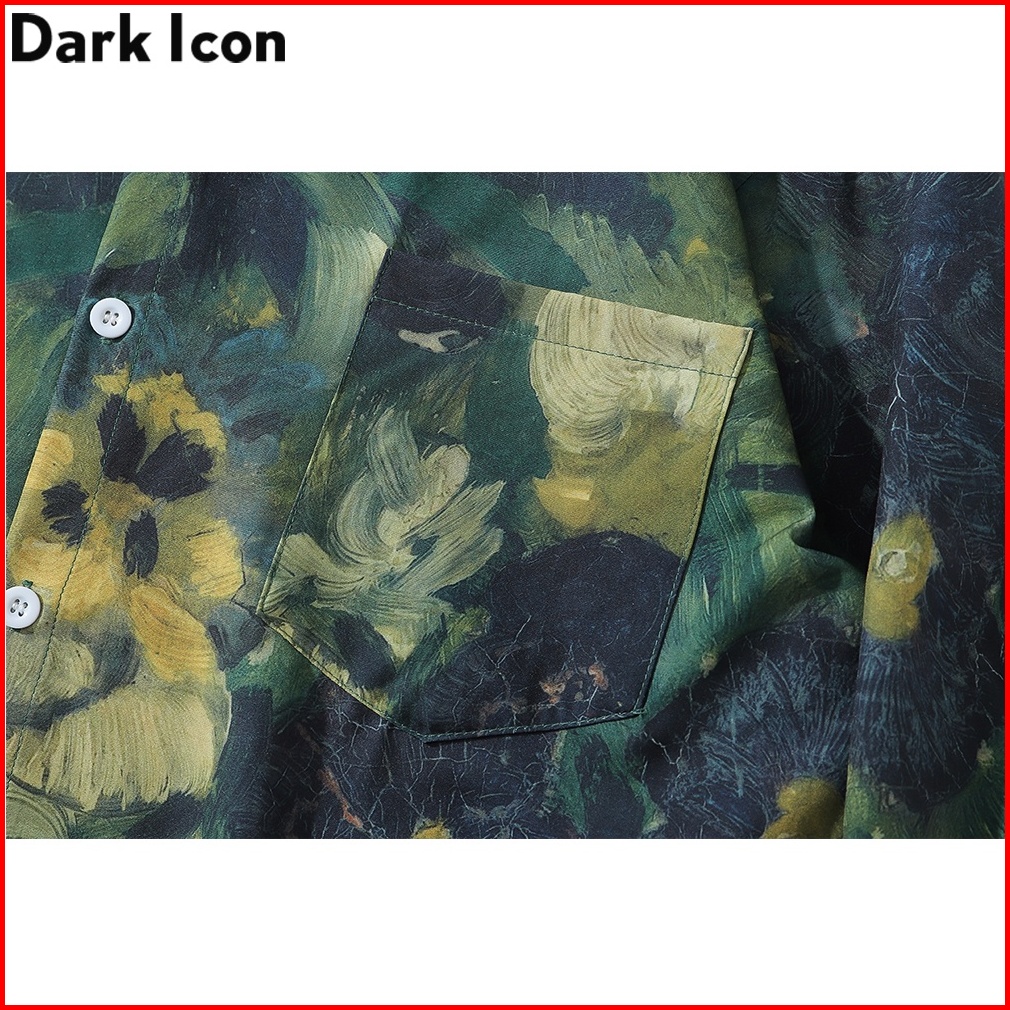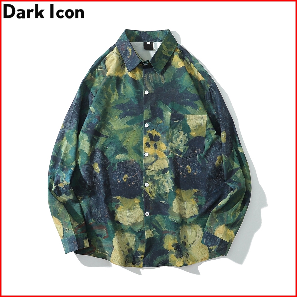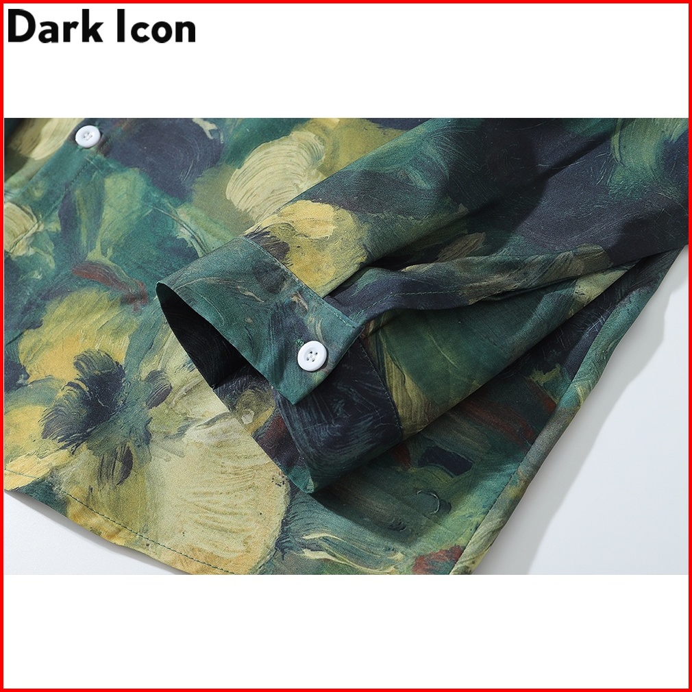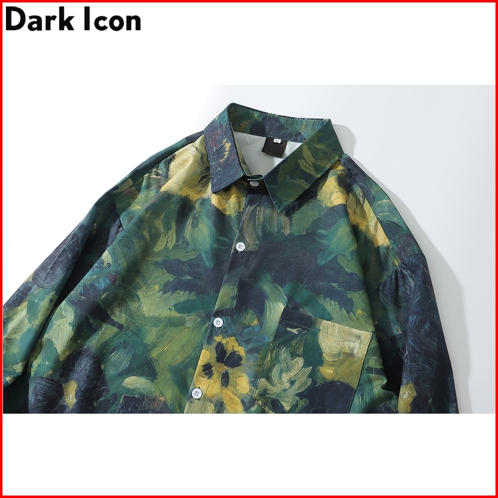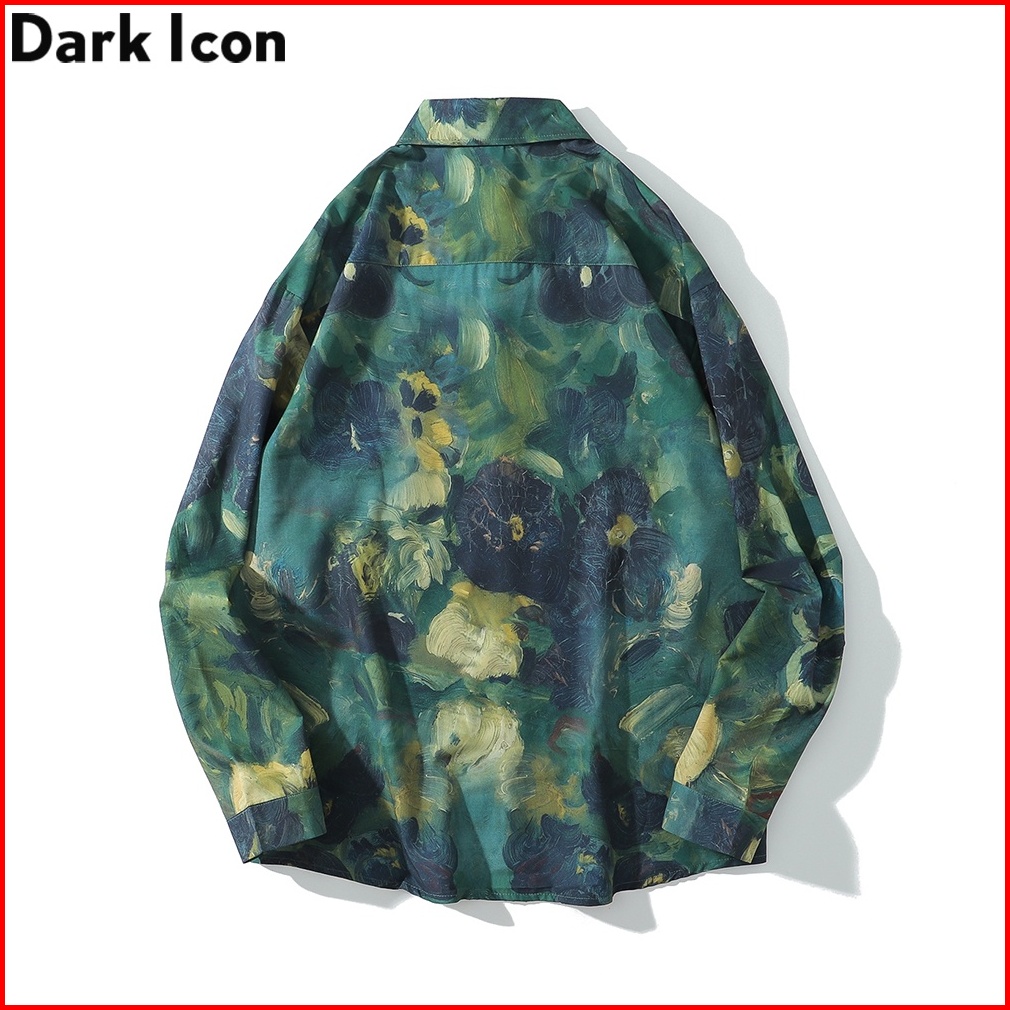 Dark Icon Oil Painting Kemeja Pria Legan Pendek Casual Kemeja Motif Wanita Long Sleeve Shirt Premium