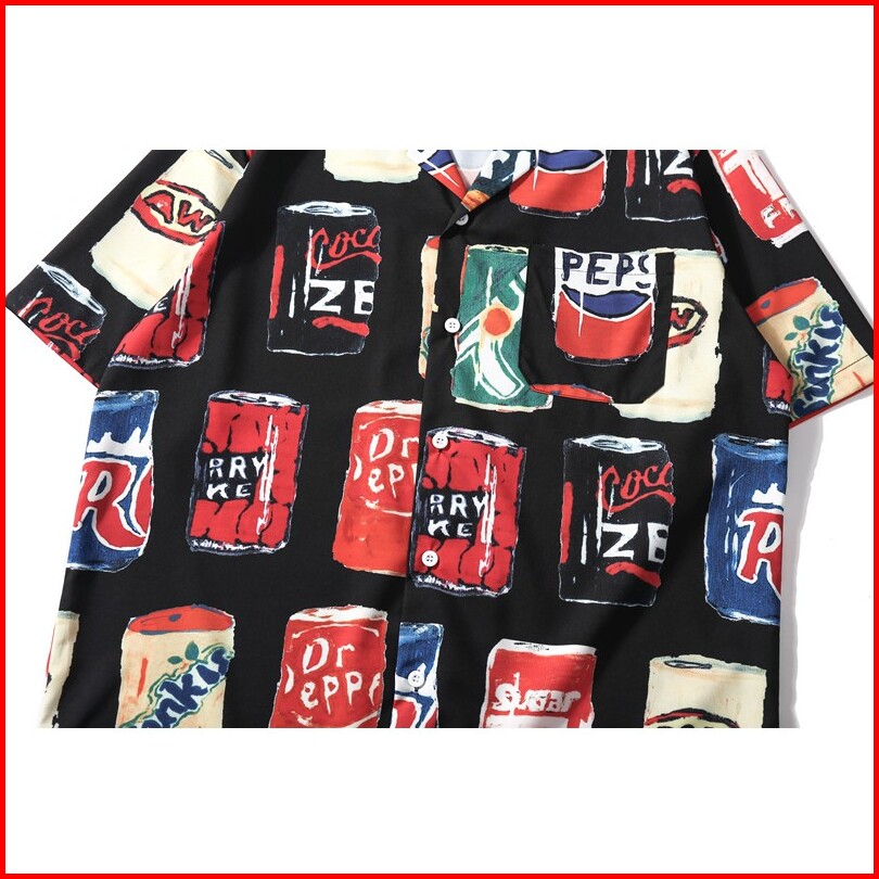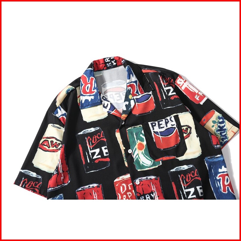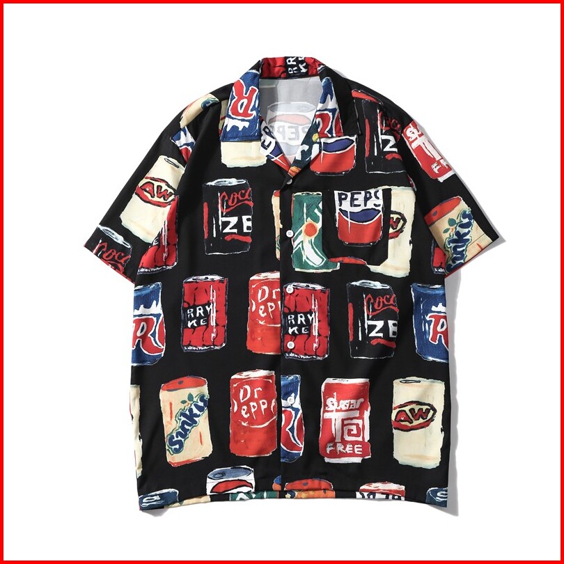 Dark Icon Kemeja Cowok Lengan Pendek Motif Print Hawai Pria Vintage Shirts Men