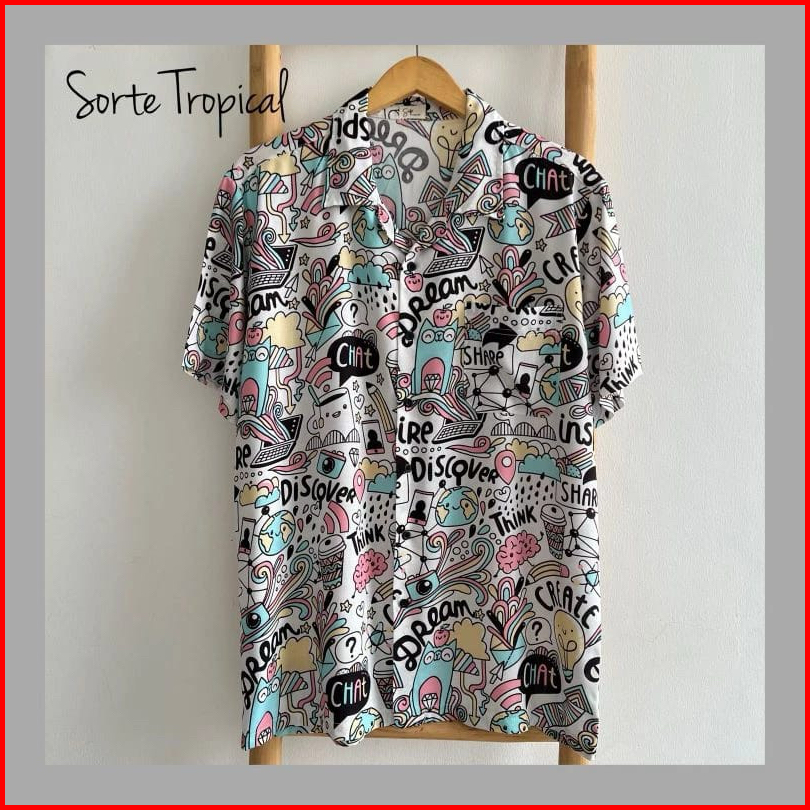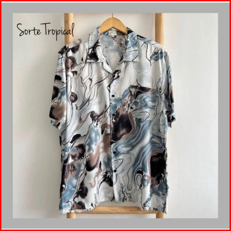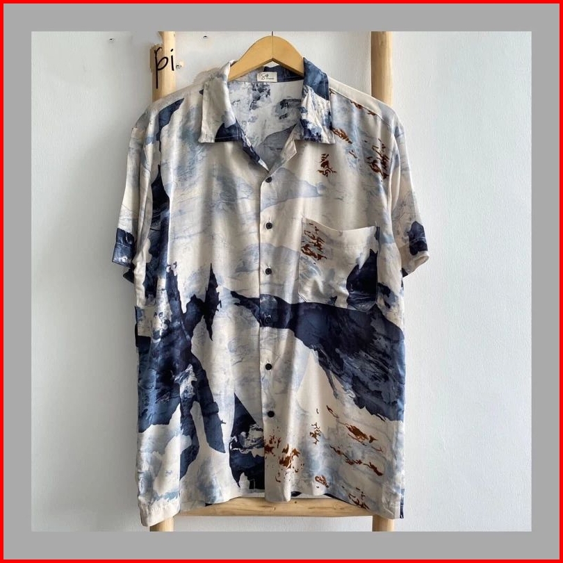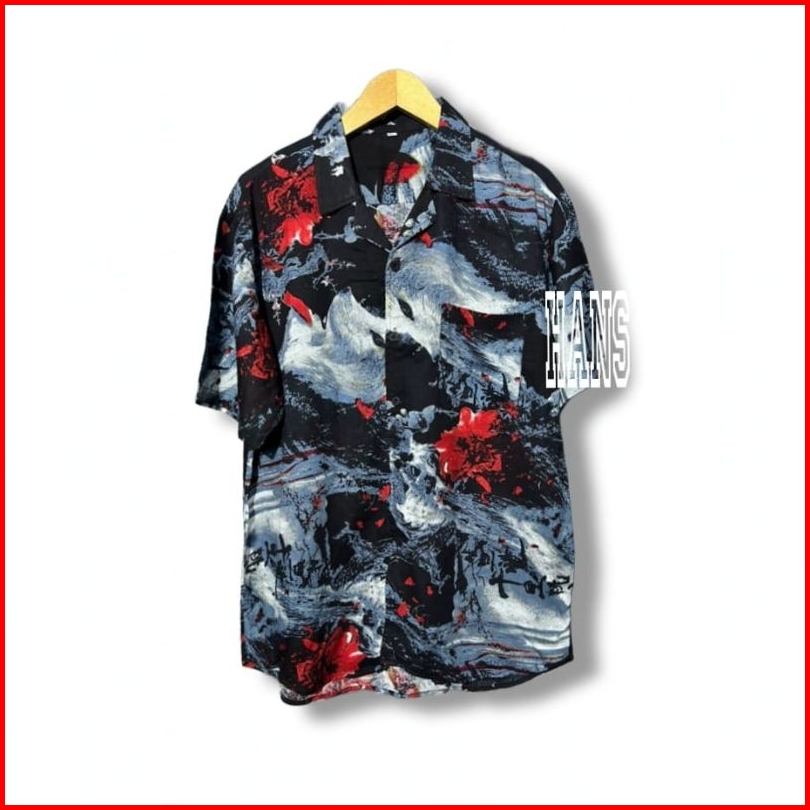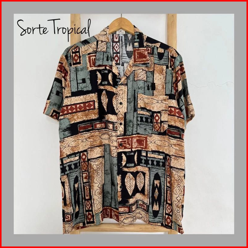 Kemeja Pria Hawai Kemeja Pantai Abstrak Vintage Casual Lengan Pendek Retro Bahan Rayon Viscose Import Adem