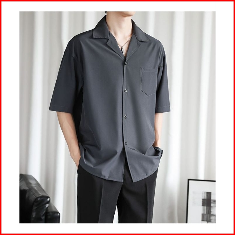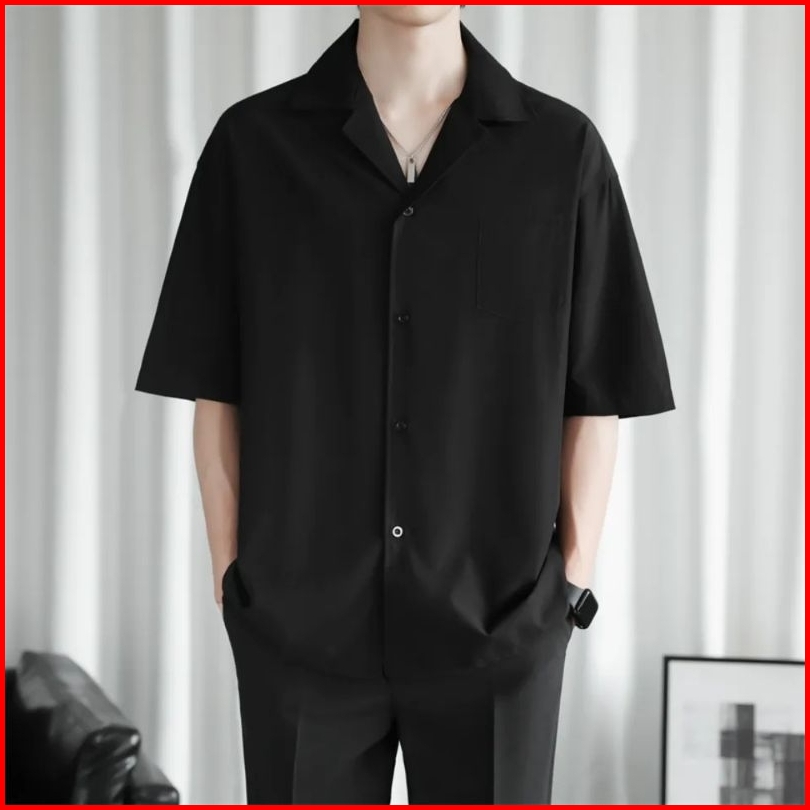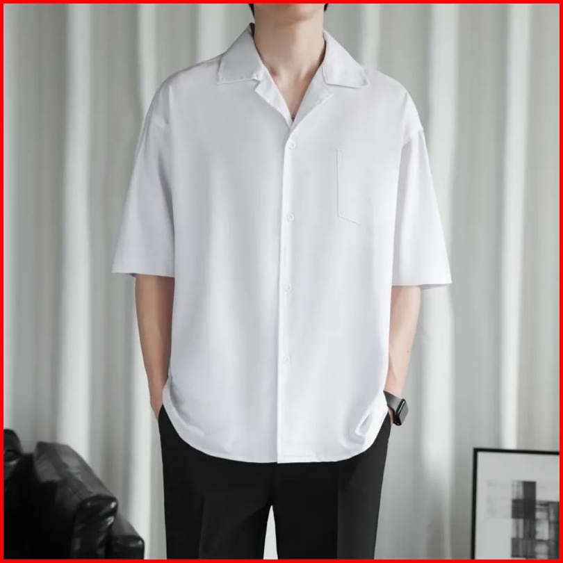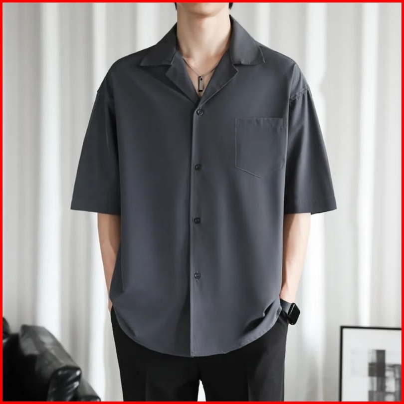 Baju Pantai Kemeja Polos Hawai Kerah Piyama Bahan Katun Rayon Korean Style