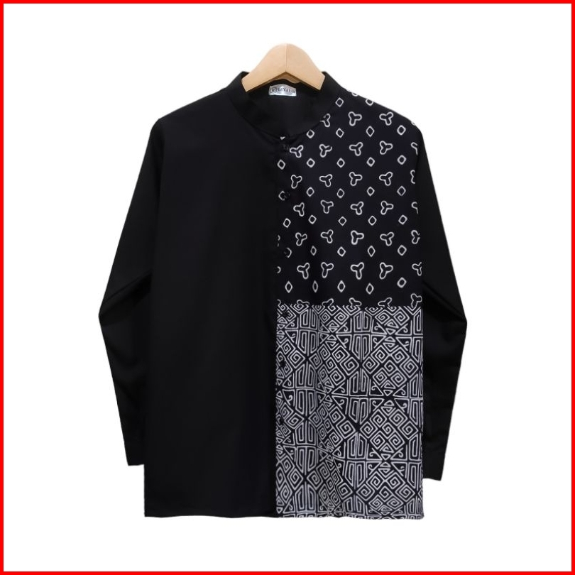 Amier Black Kemeja Pria Kemeja Koko Kemeja Batik Kemeja Sanghai Pria Baju Muslim