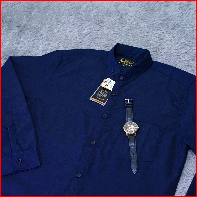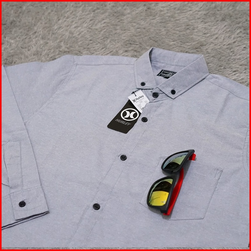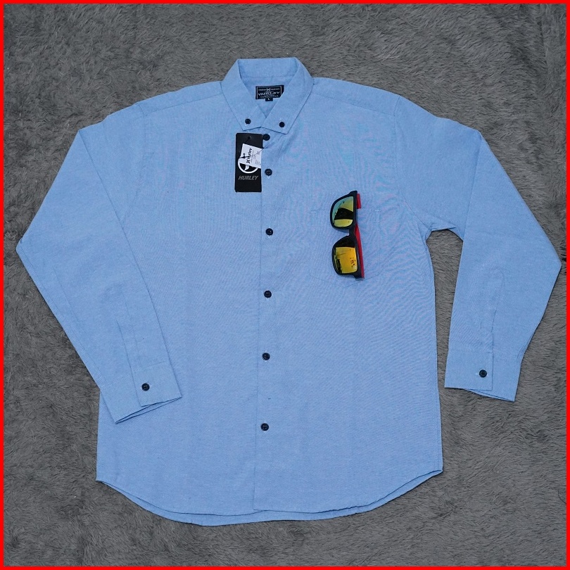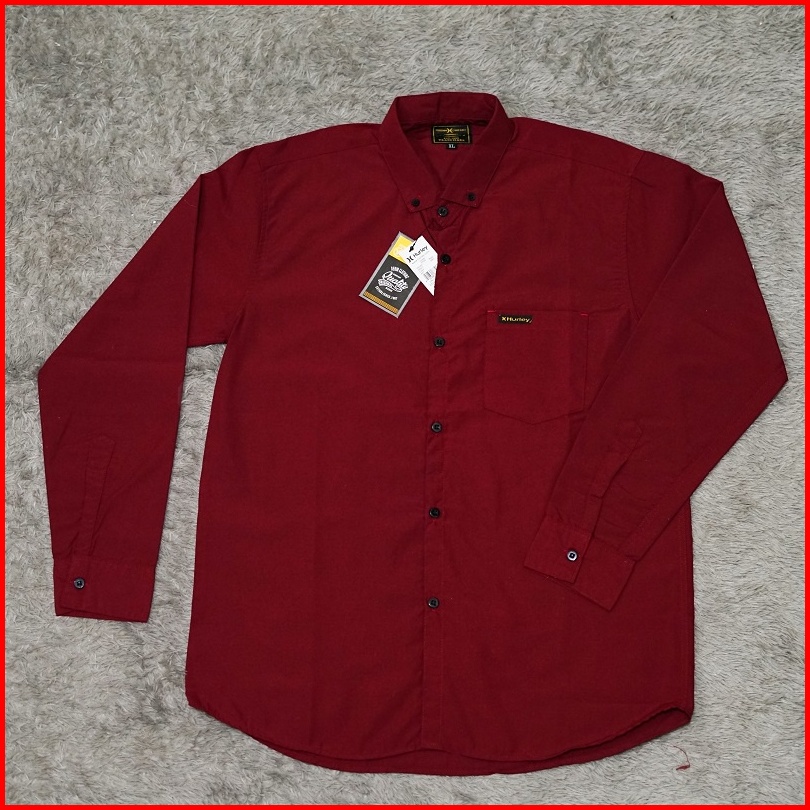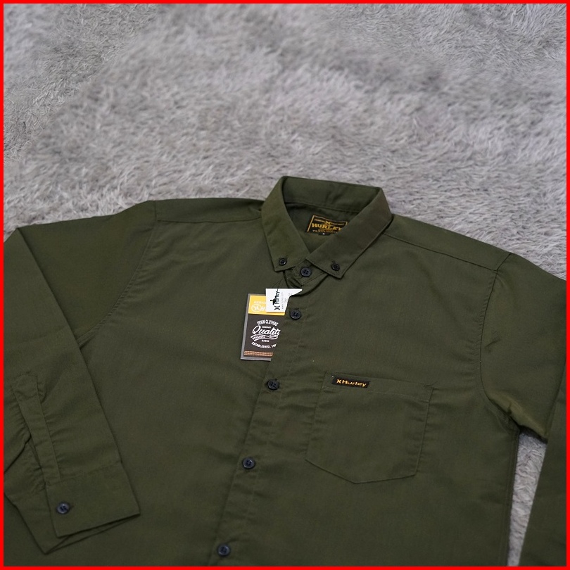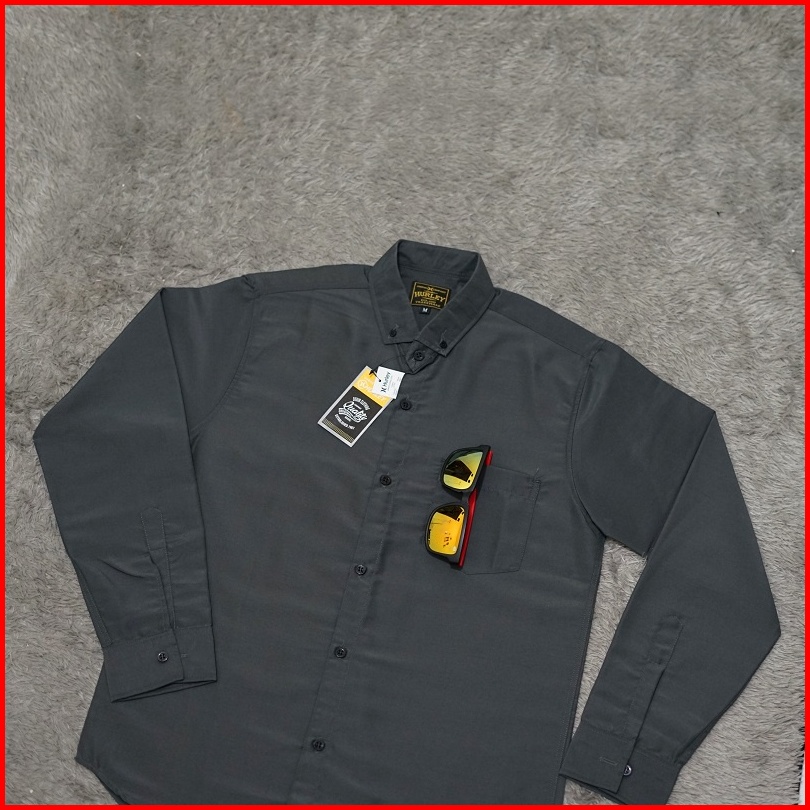 Kemeja Hitam Pria Polos Lengan Panjang Slimfit Hurley Premium Quality