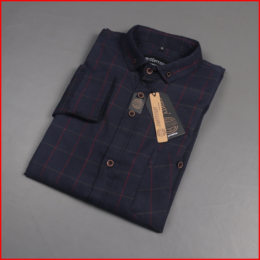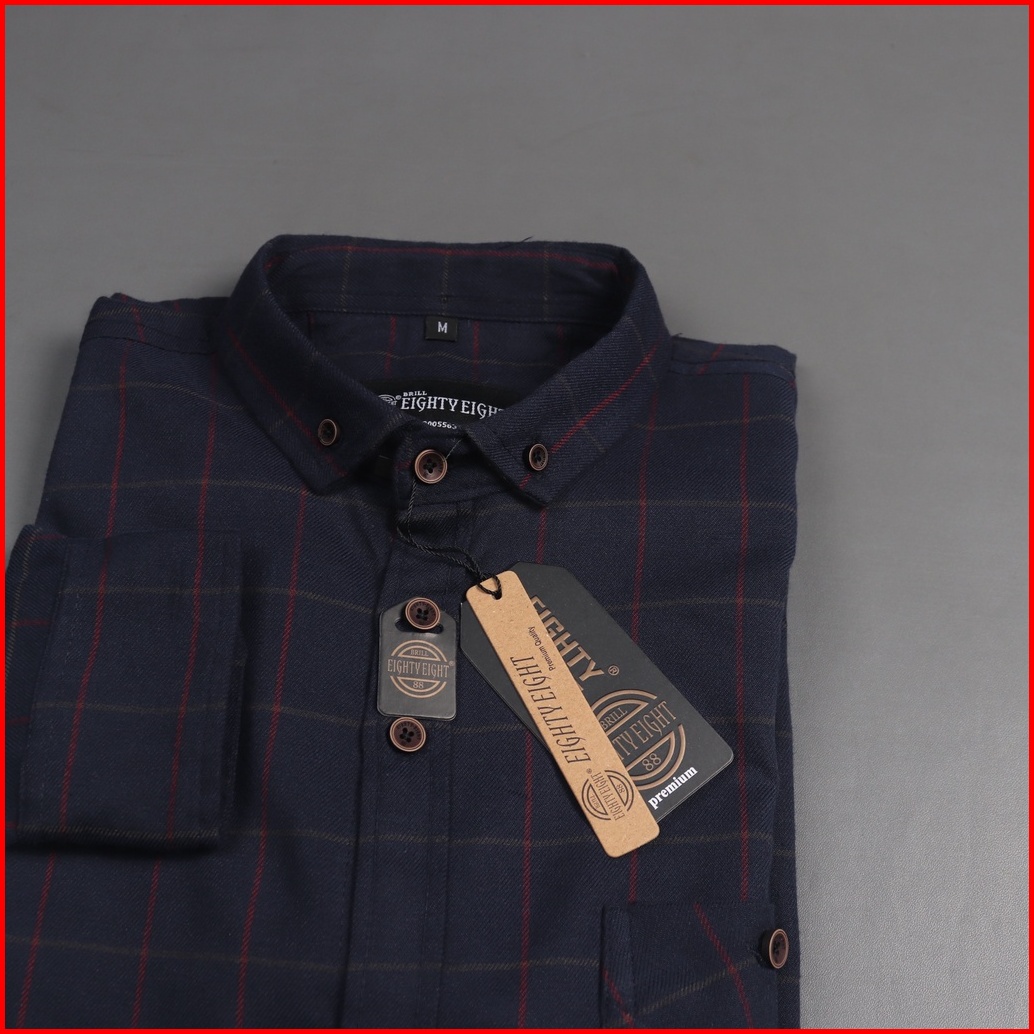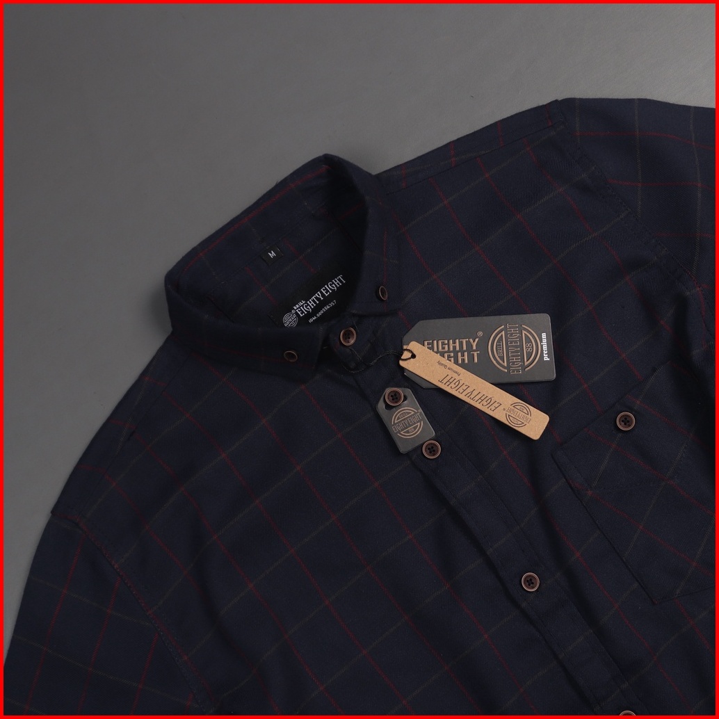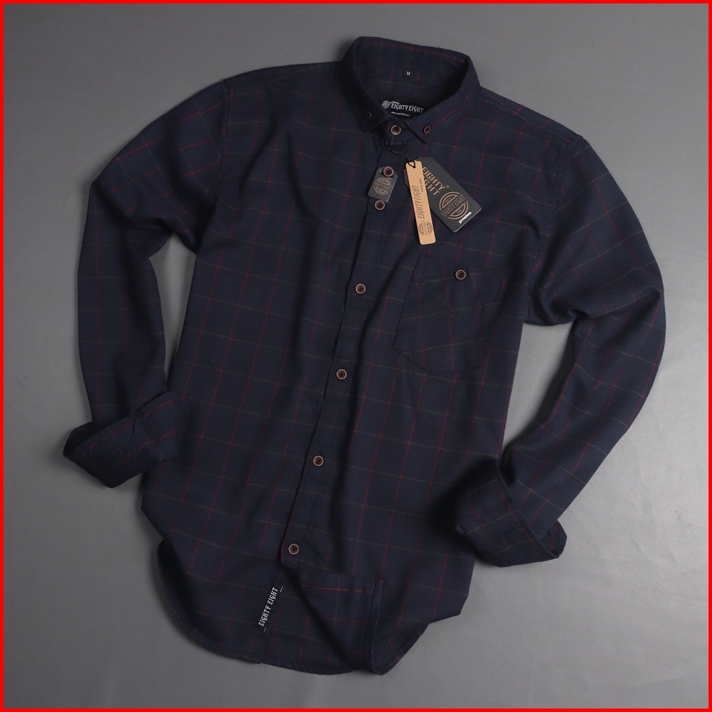 Brill Eighty Eight - Kemeja Flanel Panjang Premium Navy Dar 88 L3287