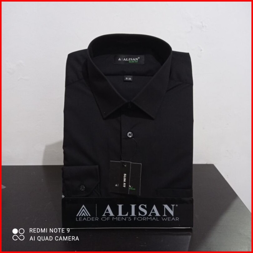 Lengan Panjang Slimfit Alisan Kemeja Polos Hitam