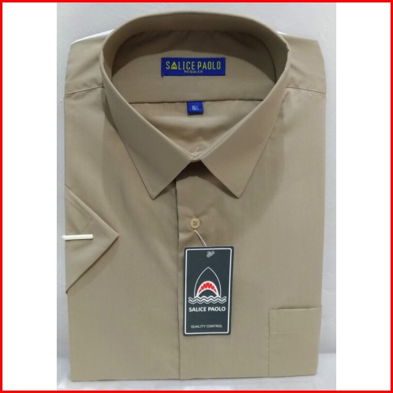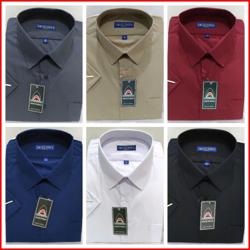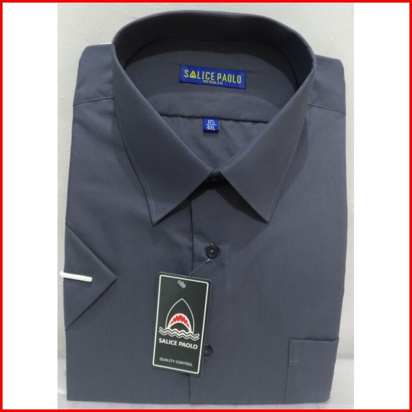 Kemeja Pria Ukuran Jumbo Pendek Salice Paolo Polos Hitam Putih Coklat Navy Abu Tua