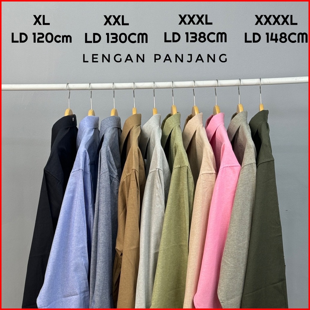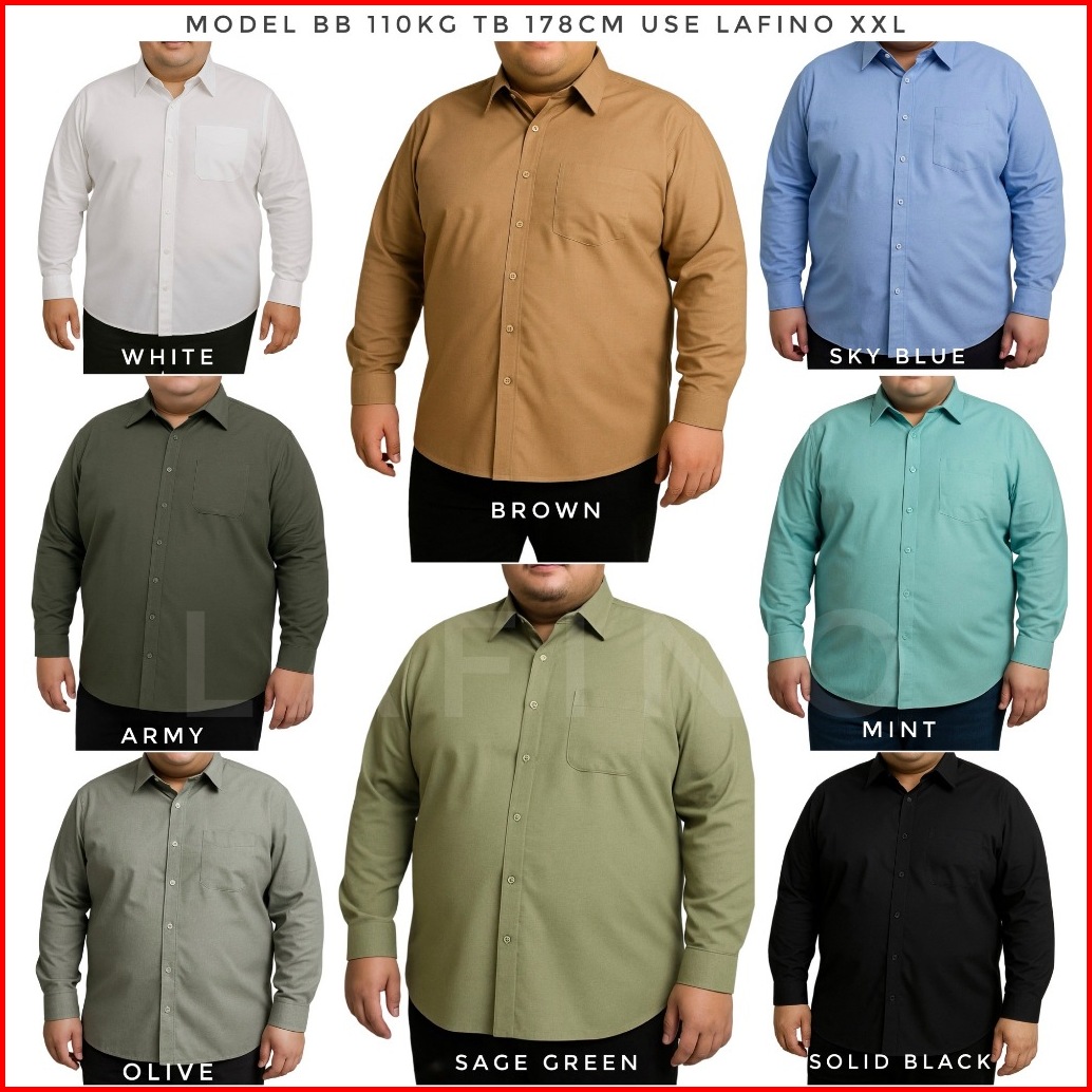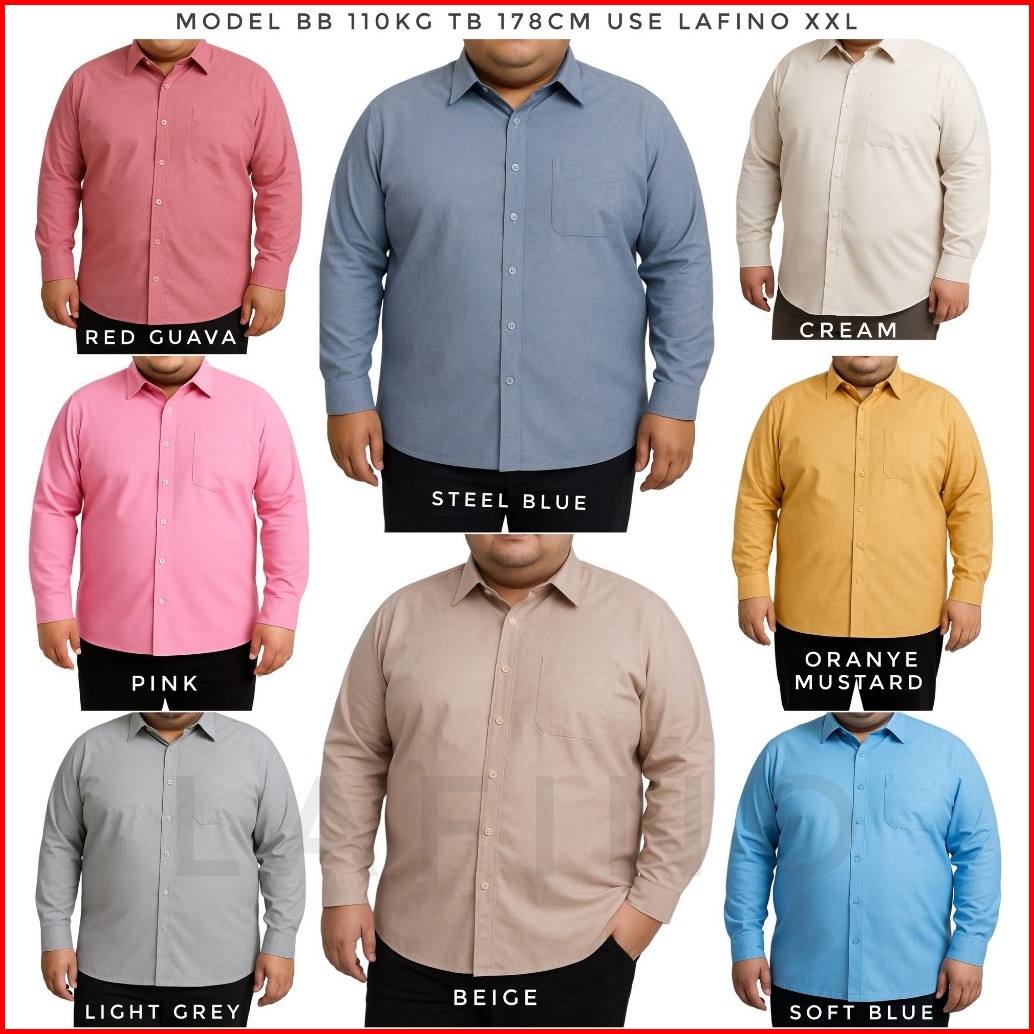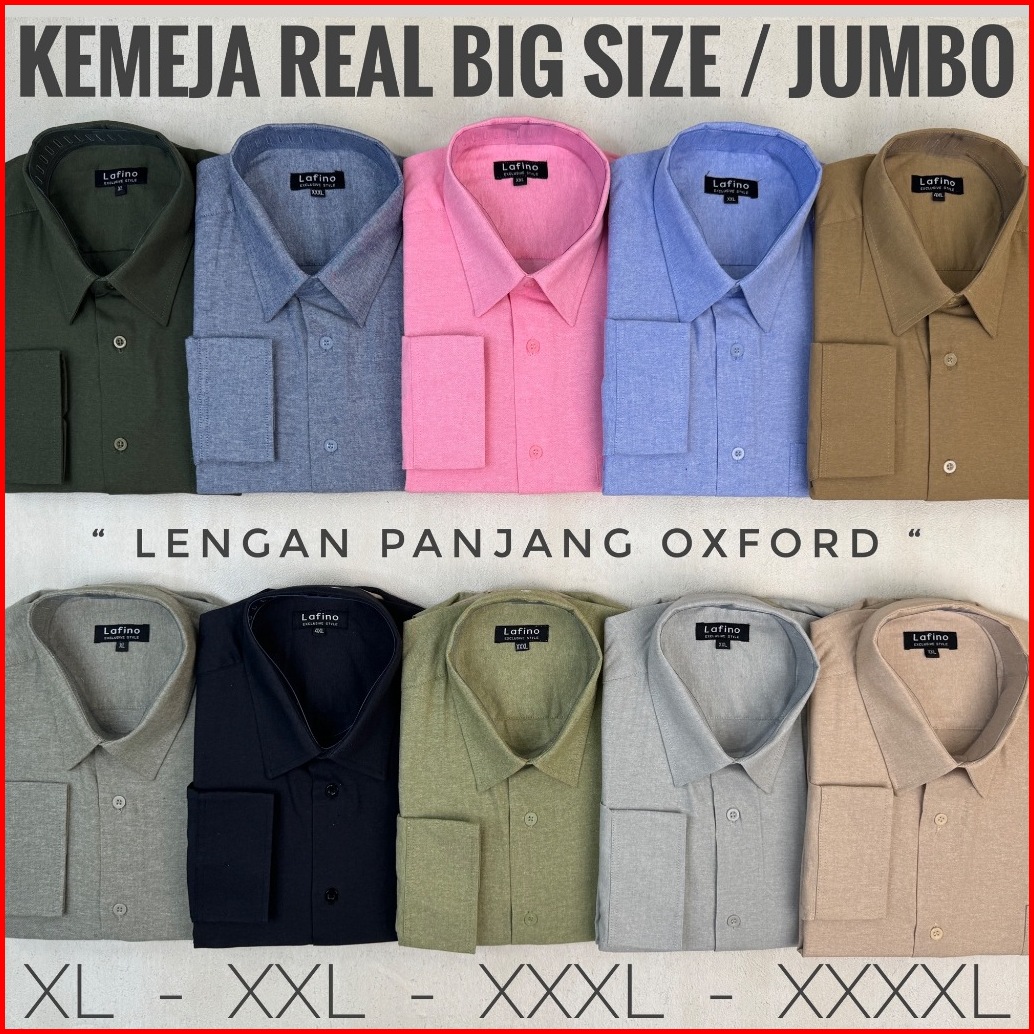 Lafino M L Xl 2xl 3xl 4xl Xxl Xxxl Xxxxl Heavyweight Oxford Kemeja Panjang Polos Jumbo Bigsize Pria