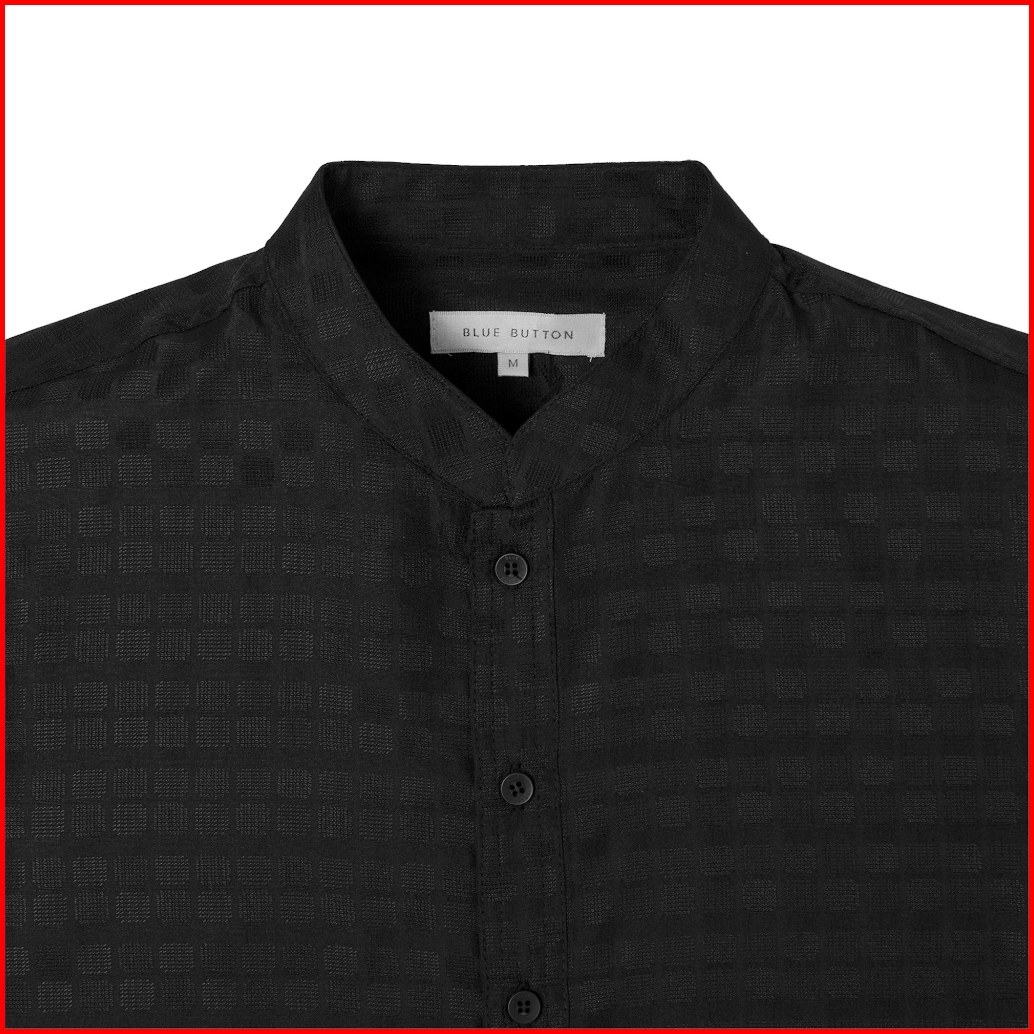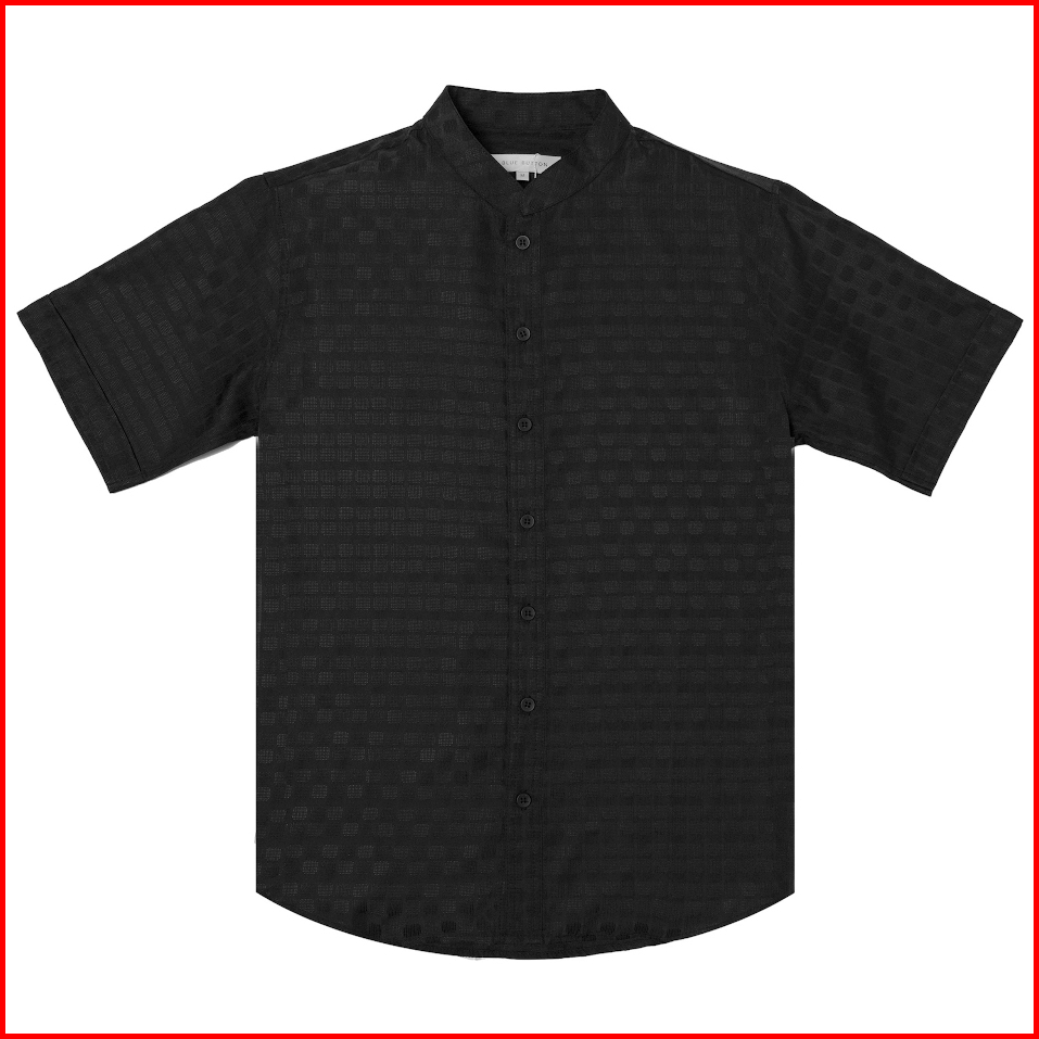 Bluebutton Kemeja Pria Kemeja Koko Kerah Shanghai Polos Lengan Pendek Black