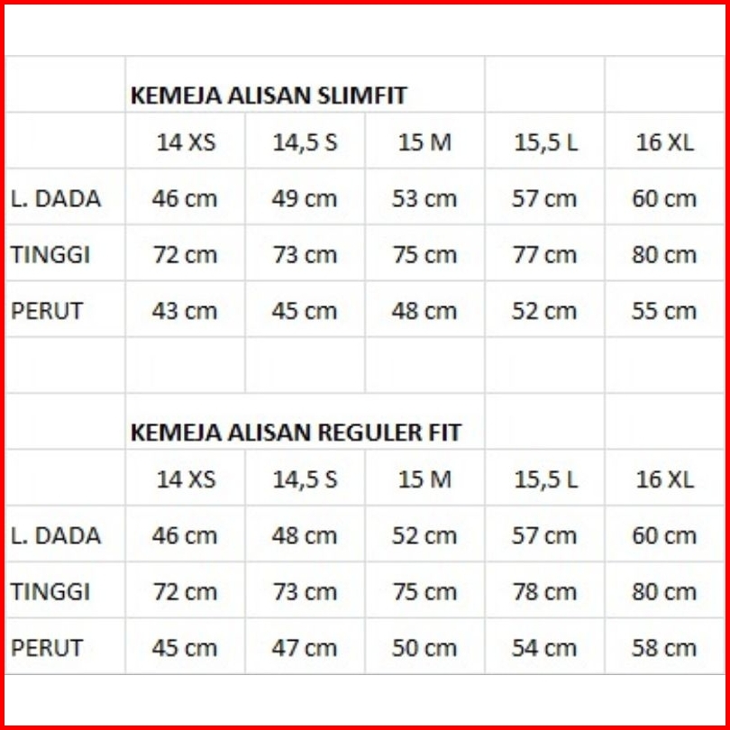 14,5 (S), 15 (M), 15,5 (L), 16 (XL)