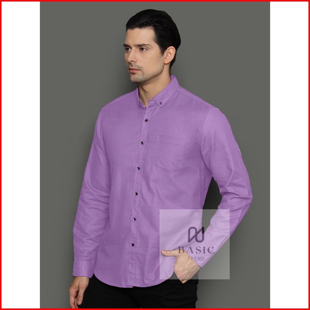 Kemeja Polos Pria Lengan Panjang Lilac Ungu Basic Atasan Slimfit Baju Kemeja Kerja Pria
