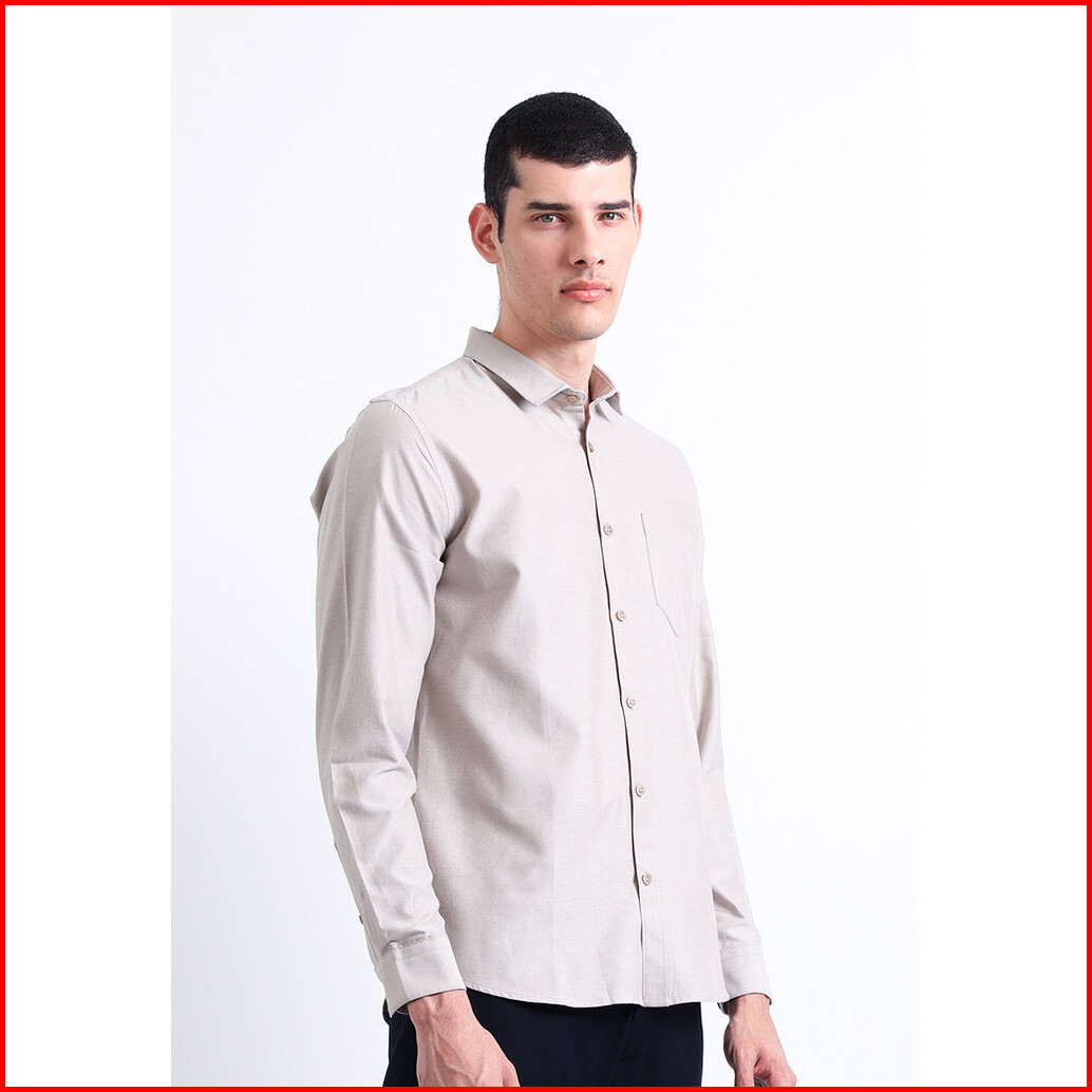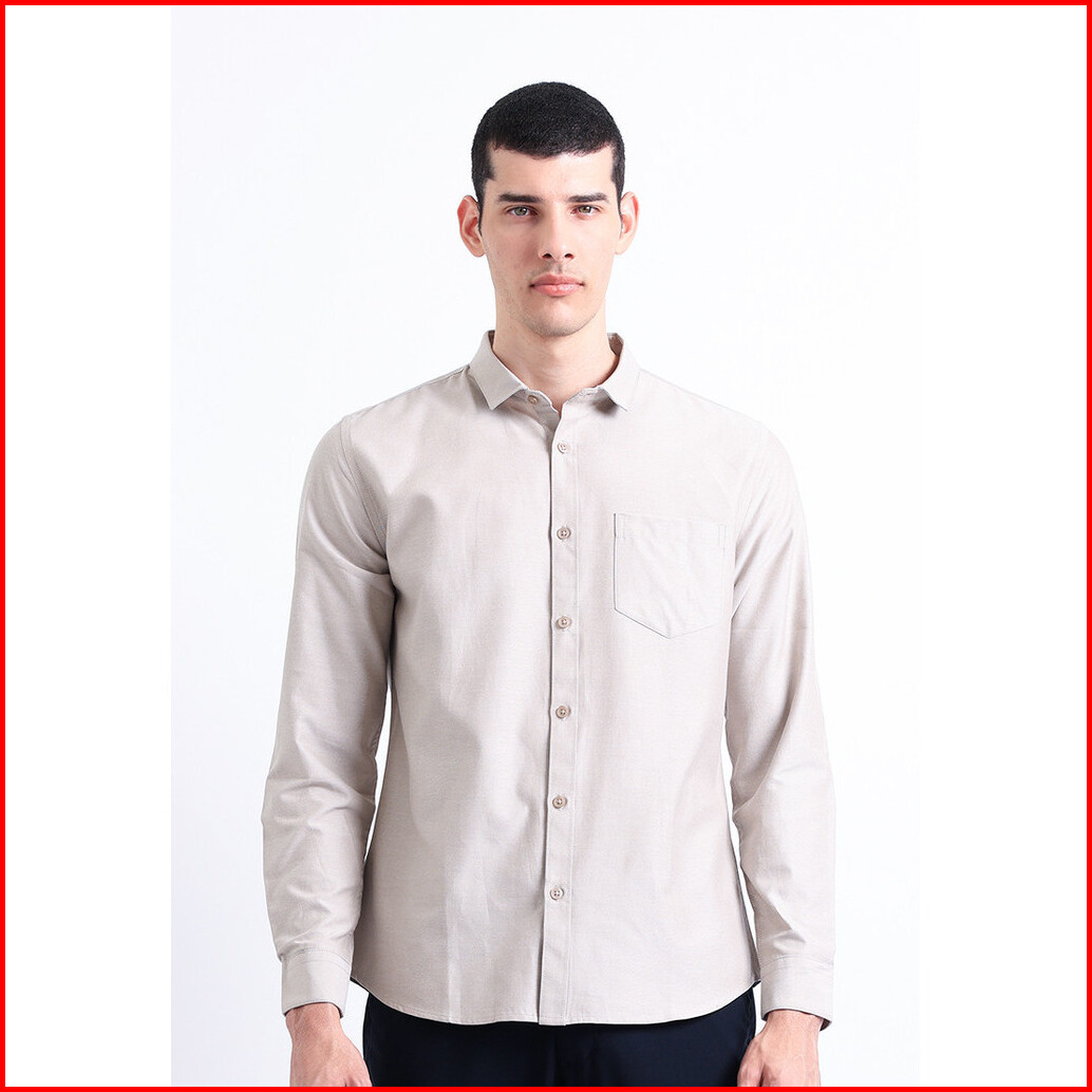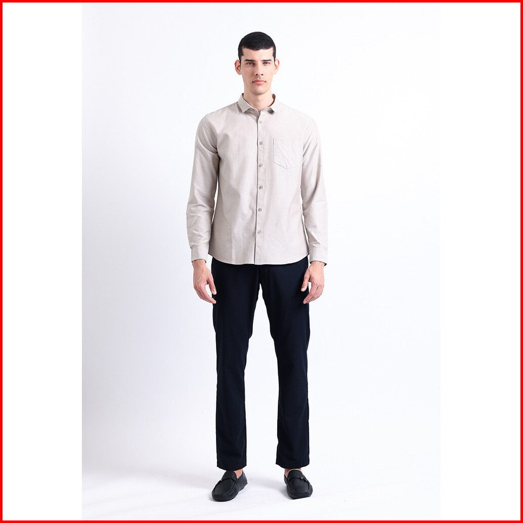 Manzone Kemeja Lengan Panjang Pria Slim Fit Foxy - Beige