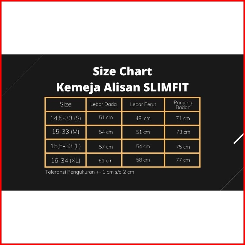 S (14,5-33), M (15-33), L (15,5-33), XL (16-34)