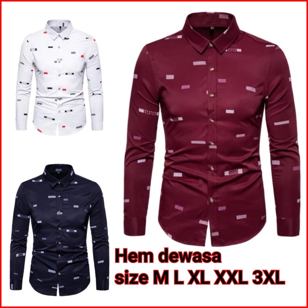 Terbaru 3warna Ukuran M-l-xl-xxl-3xl Kemeja Motif Asli Lengan Panjang Hem Pria Casual Bravo Cross