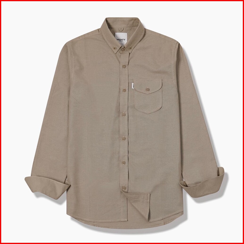 Highty Khaki Plain Cotton Long Sleeve Shirt