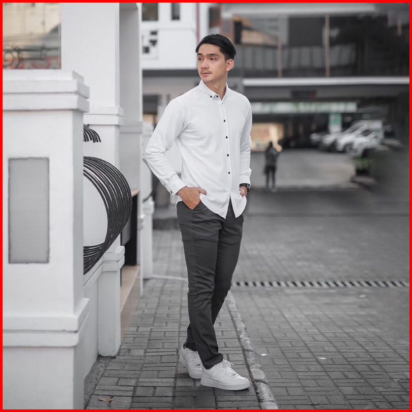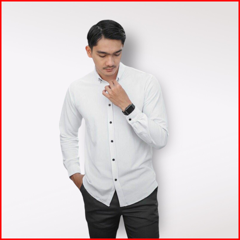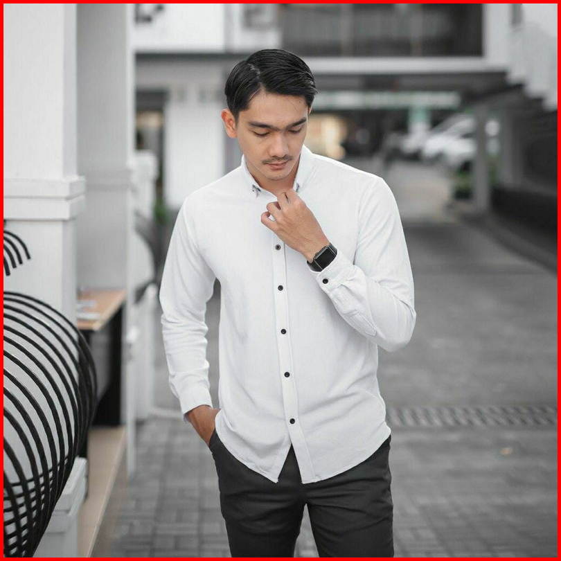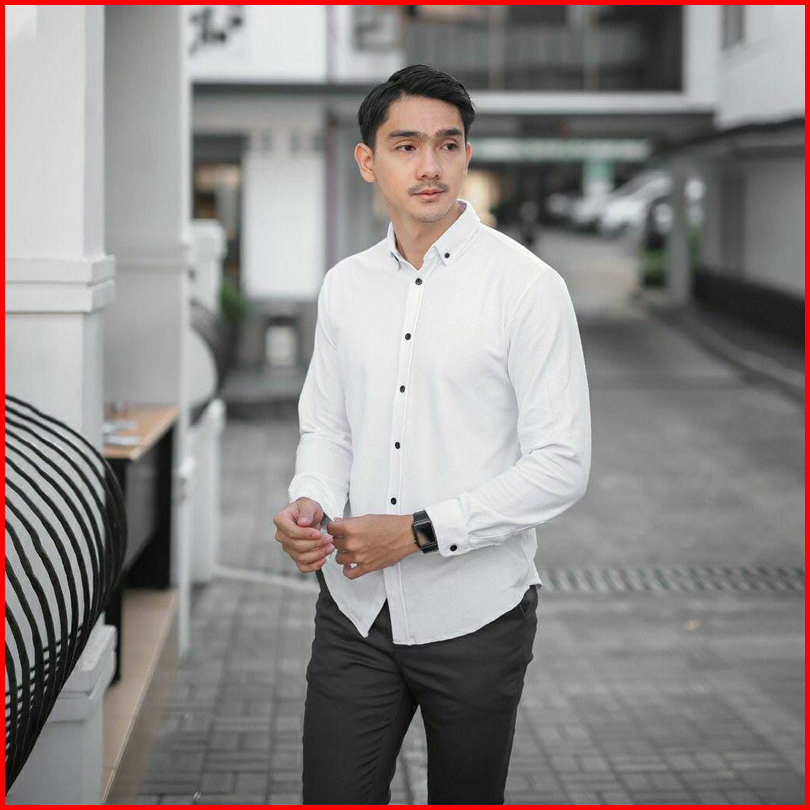 Aljosa Kemeja Pria Polos Putih Lengan Panjang Kerja Kantor