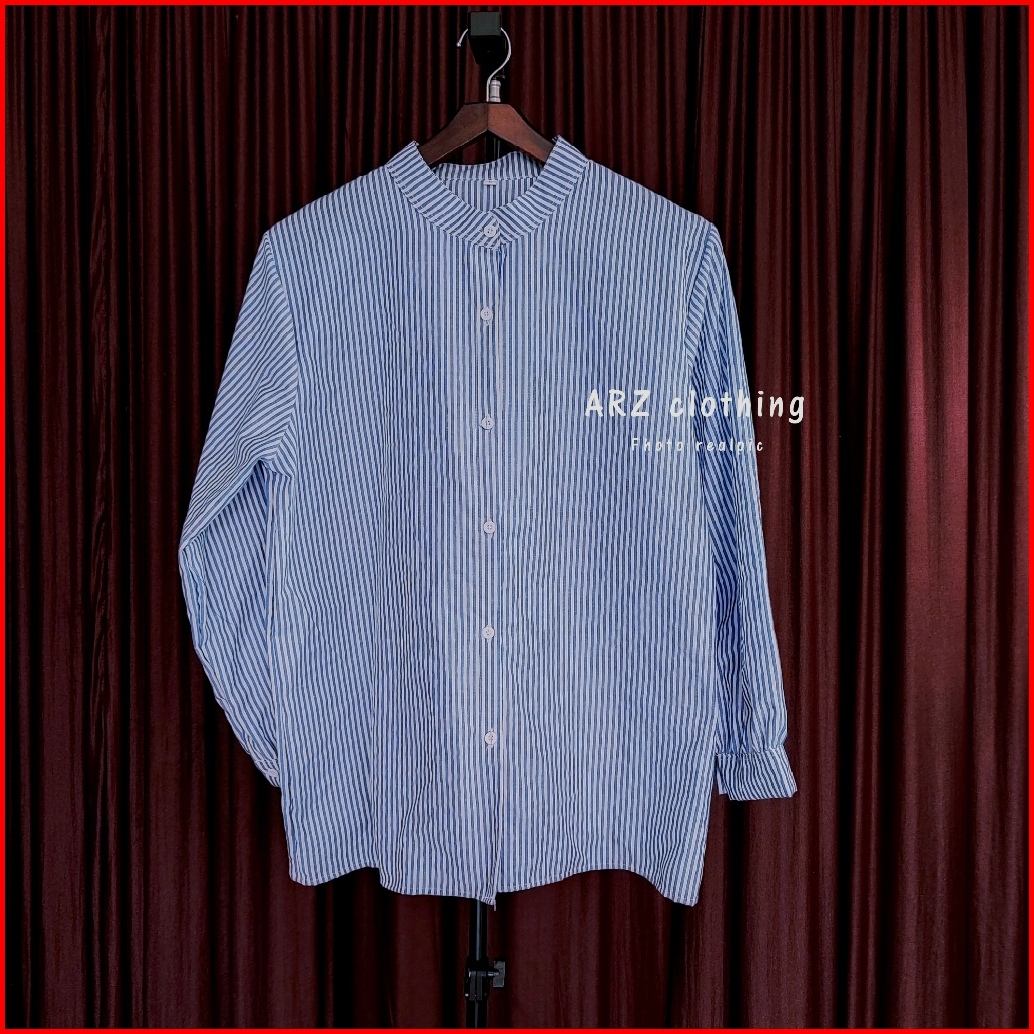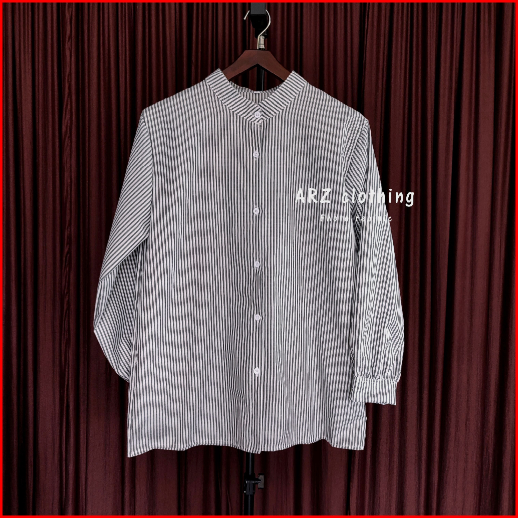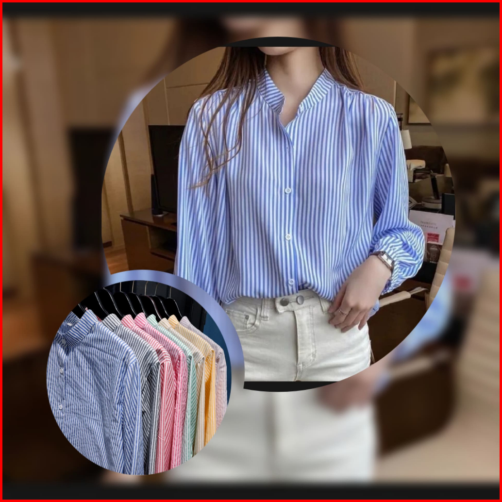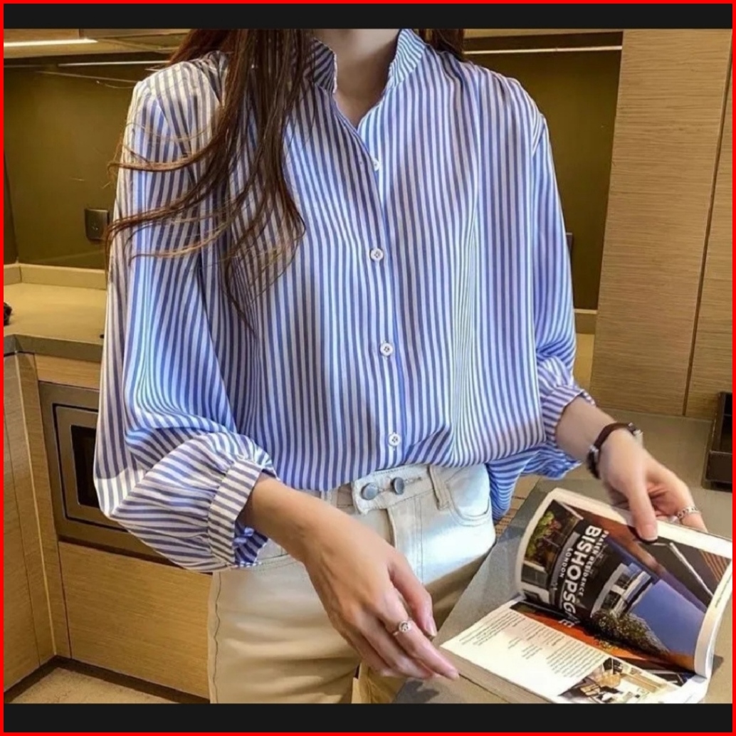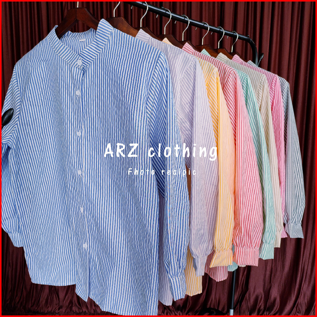 Atasan Kemeja Motif Salur Wanita Stripe Terbaru Kekinian Size M L Xl Xxl 3xl Jumbo
