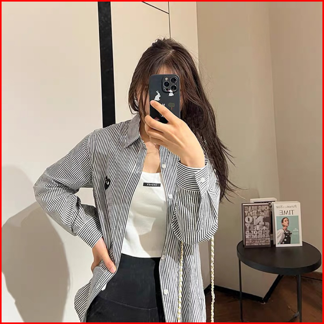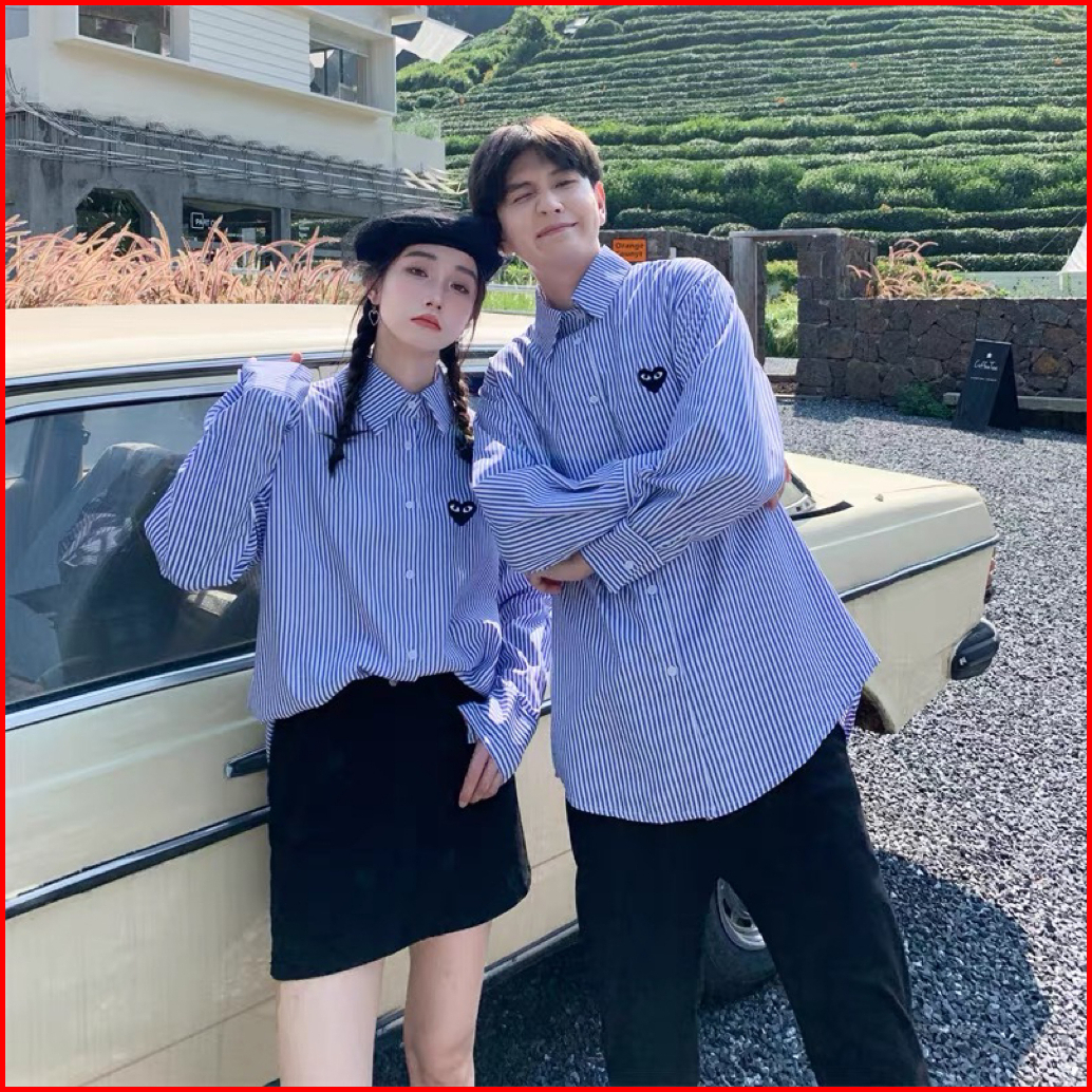 Red Kemeja Garcon Lover 8-001 Kemeja Kantor Kemeja Salur Atasan Wanita Kemeja Couple Kemeja Unisex
