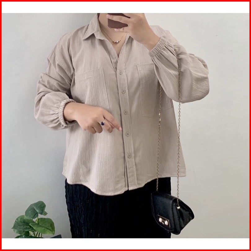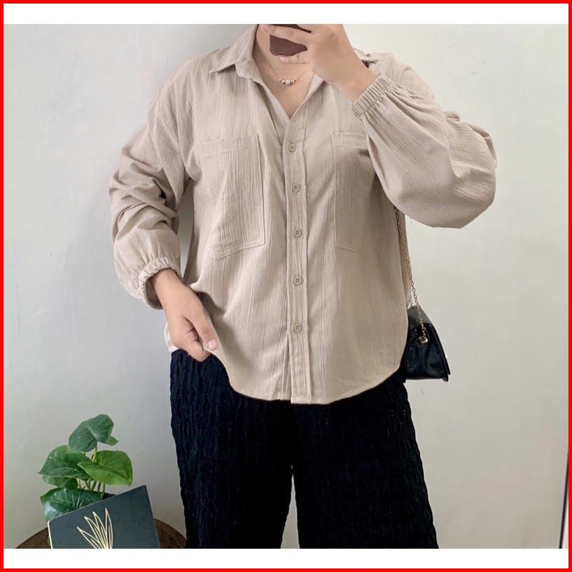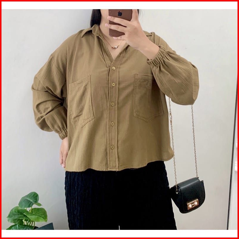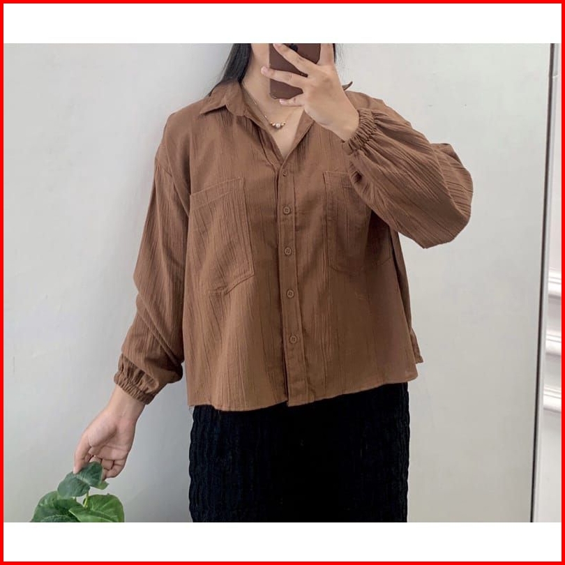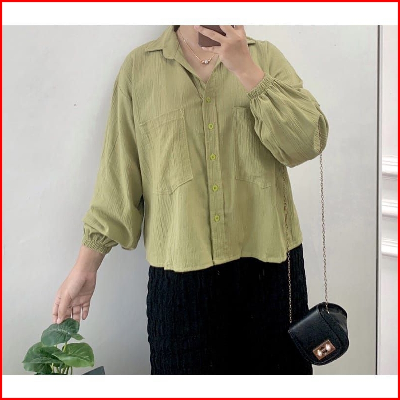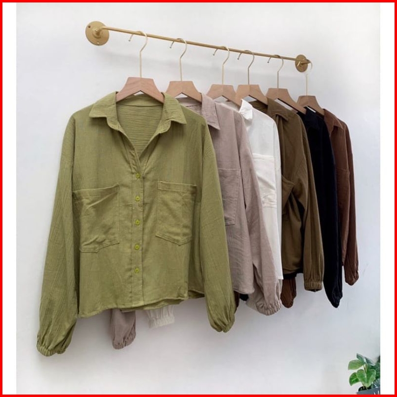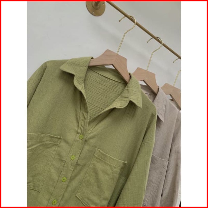 Zaloora Crop Shirt Linen - Kemeja Crop 2 Pocket - Oversized Shirt Linen - Atasan Wanita