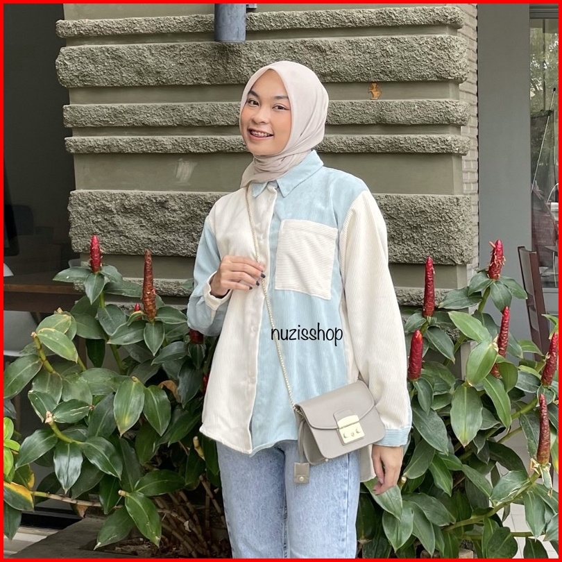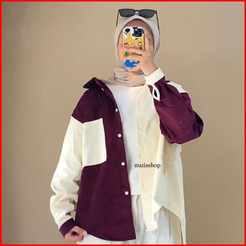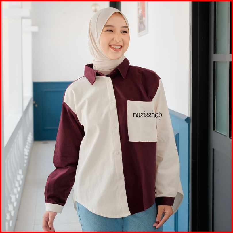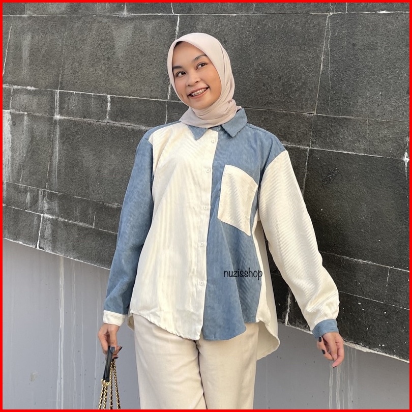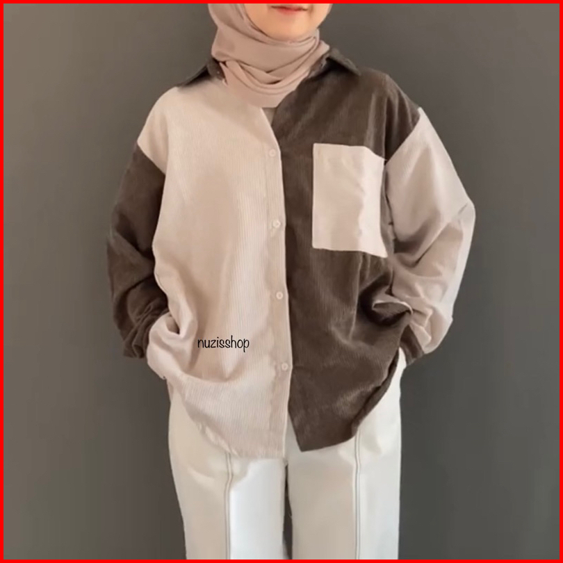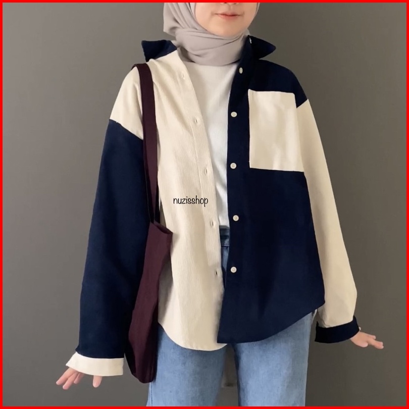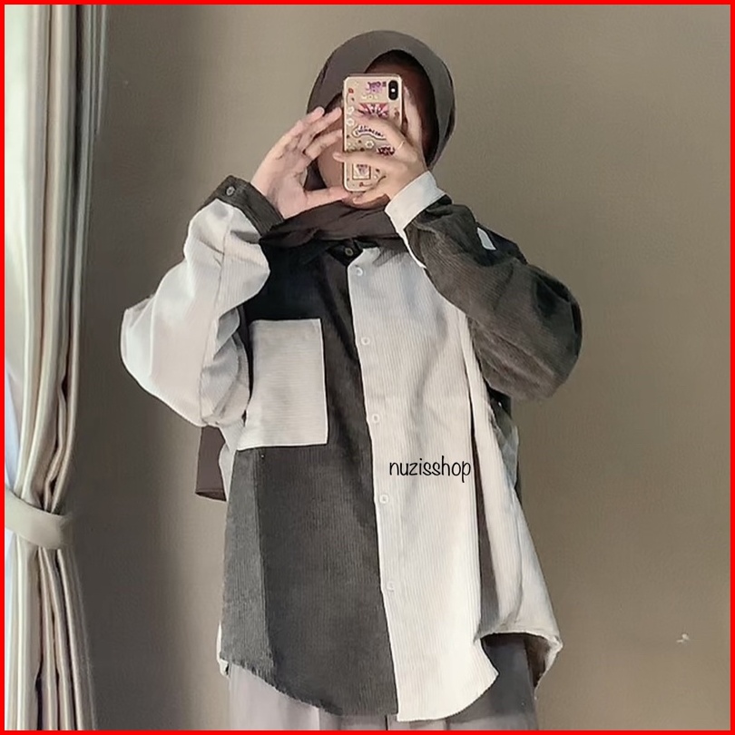Nuzi - Alaska Kemeja Corduroy Import Oversized Shirt Two Tone Korean Style