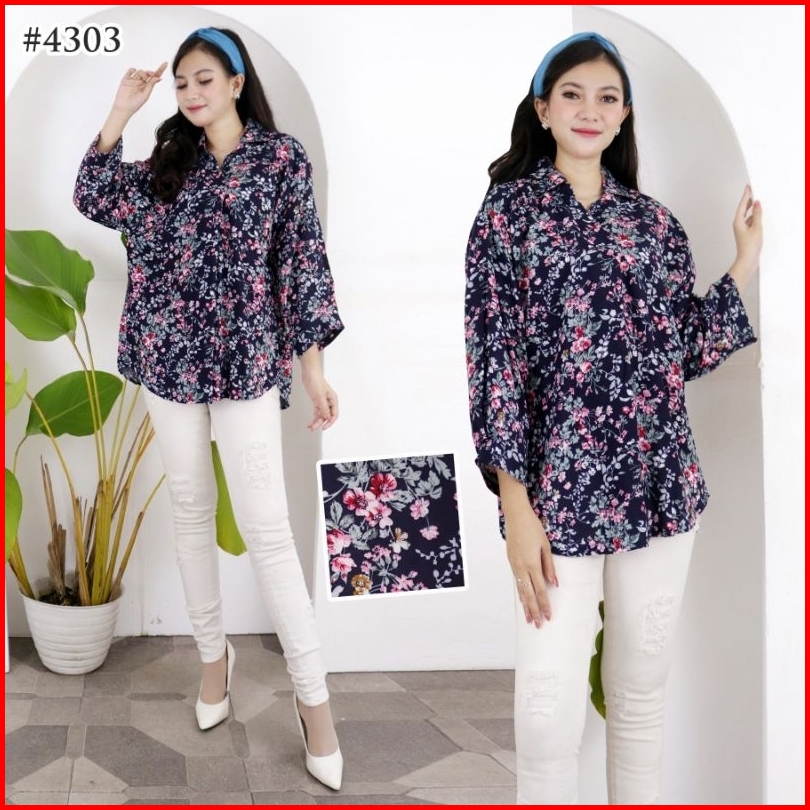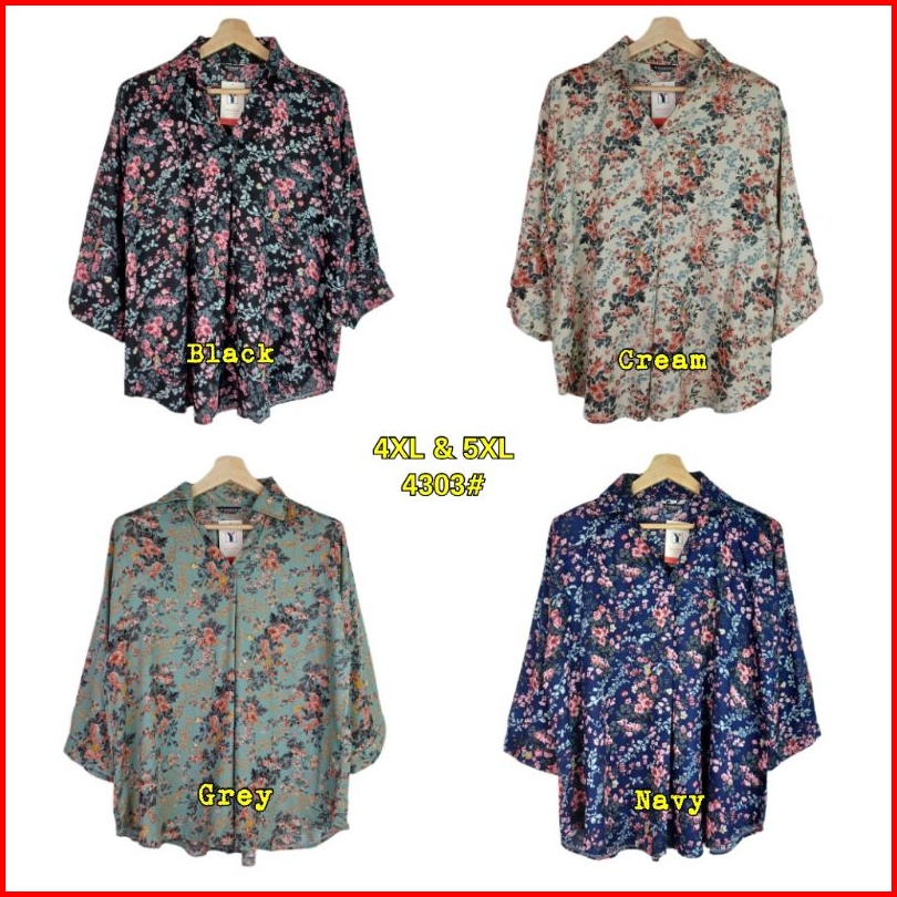 Atasan V-neck Wanita Jumbo Rayon Bunga Big Size 4xl 5xl Ld 120 Cm - Ld 130 Cm 4303