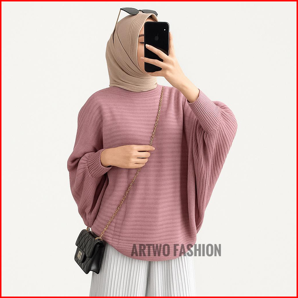 Artwo Atasan Blouse Rajut Wanita Jumbo Outer Batwing Oversize Muat Hingga Bb 140kg Halus Nyaman