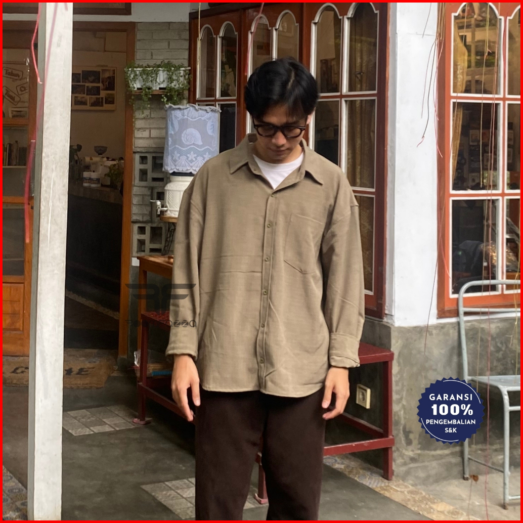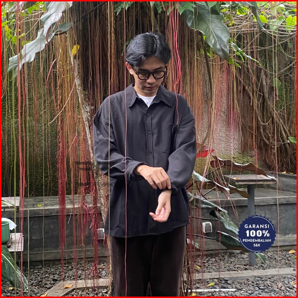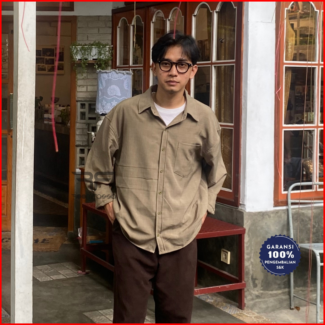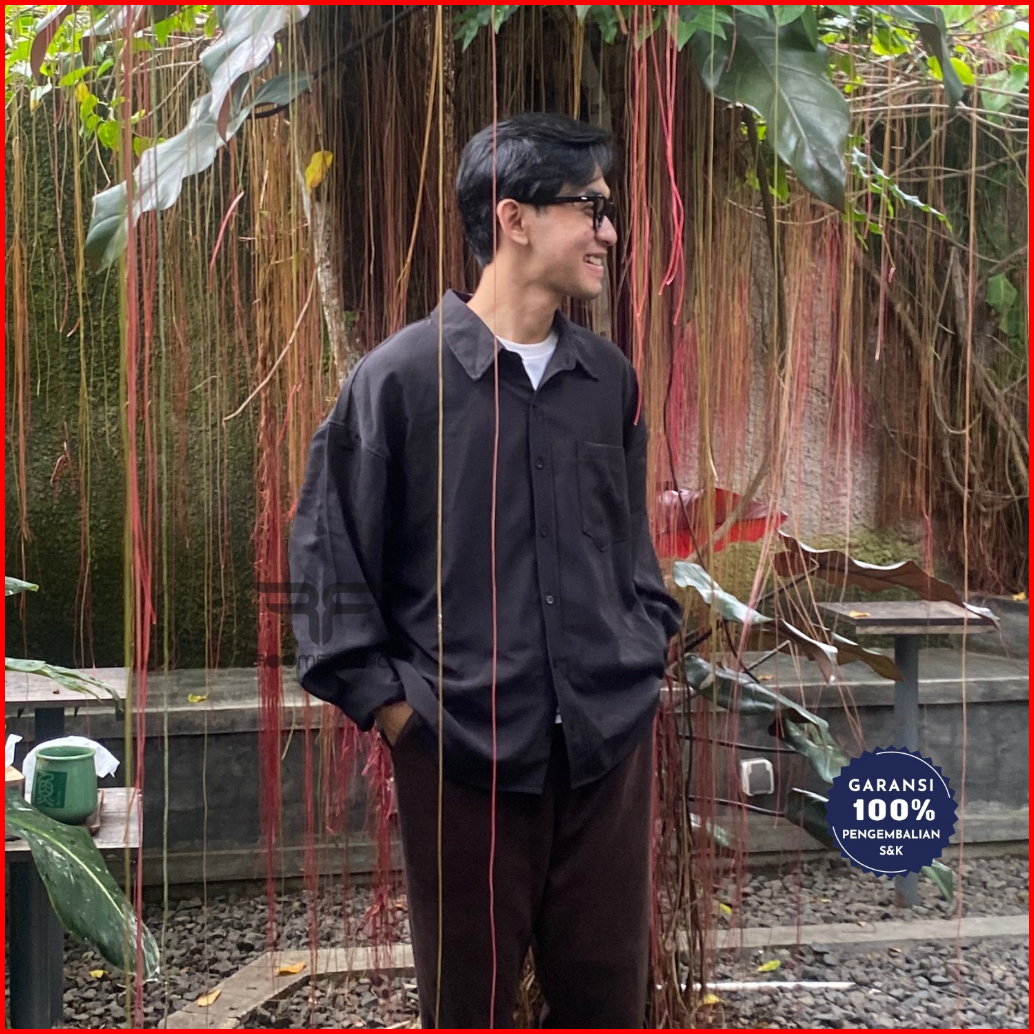 Roomfazza Kemeja Lengan Panjang Oversized Pria Kemeja Kasual Kemeja Polos Kemeja Pria Kemeja Oversize