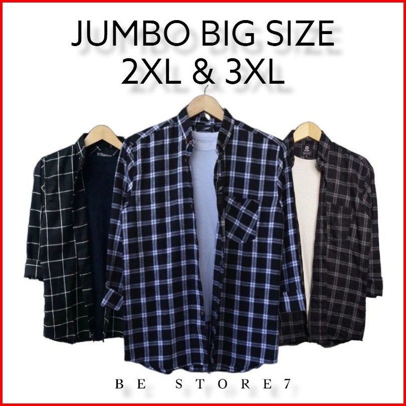 Kemeja Flanel Jumbo Big Size Xxl Xxxl Pria Wanita Lengan Panjang Hem Oversize Premium Hurley Distro