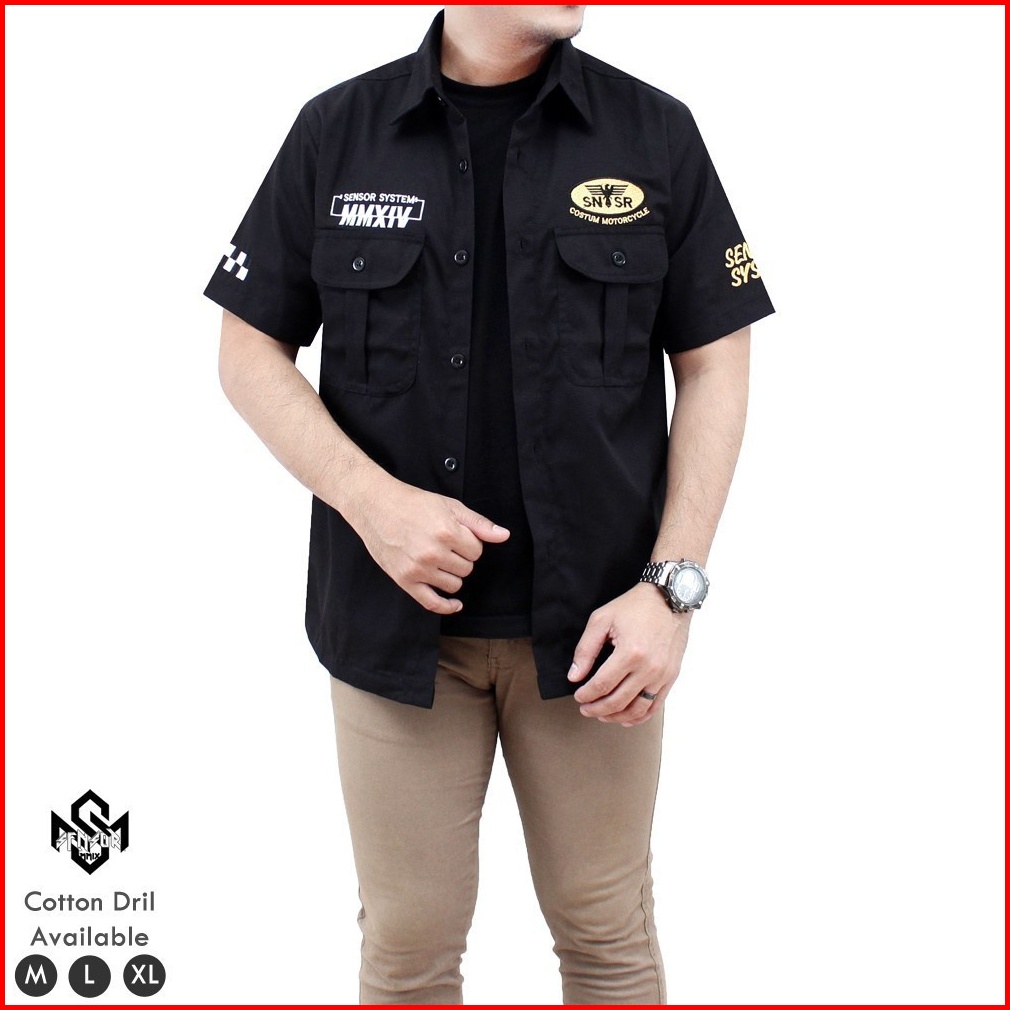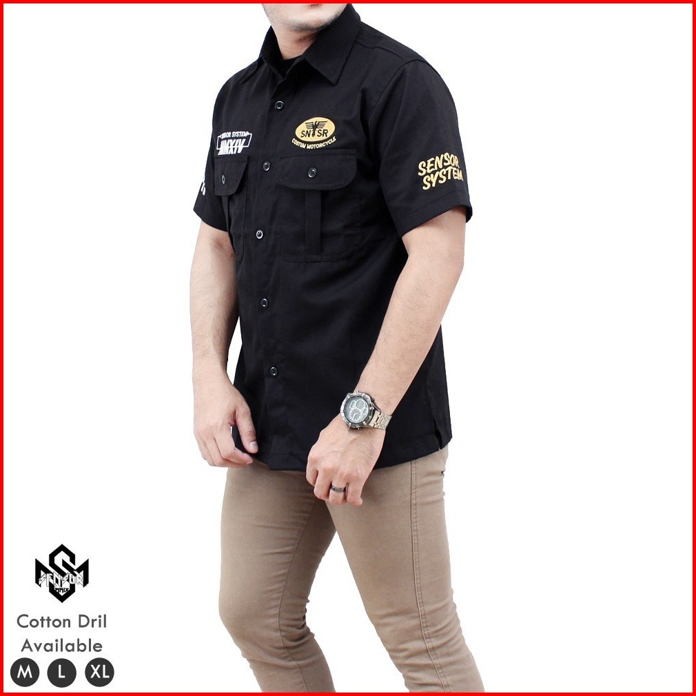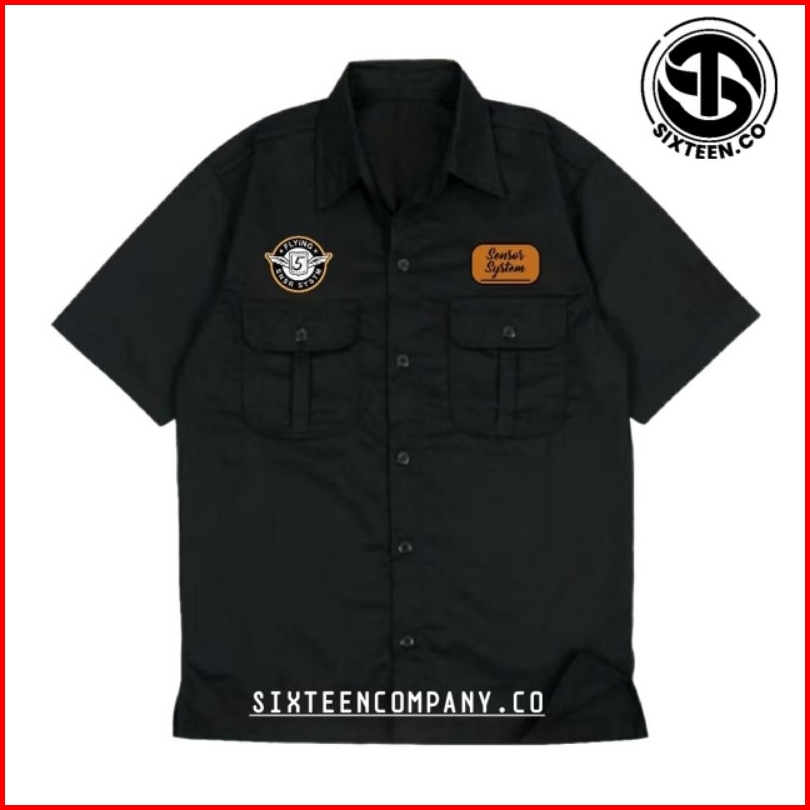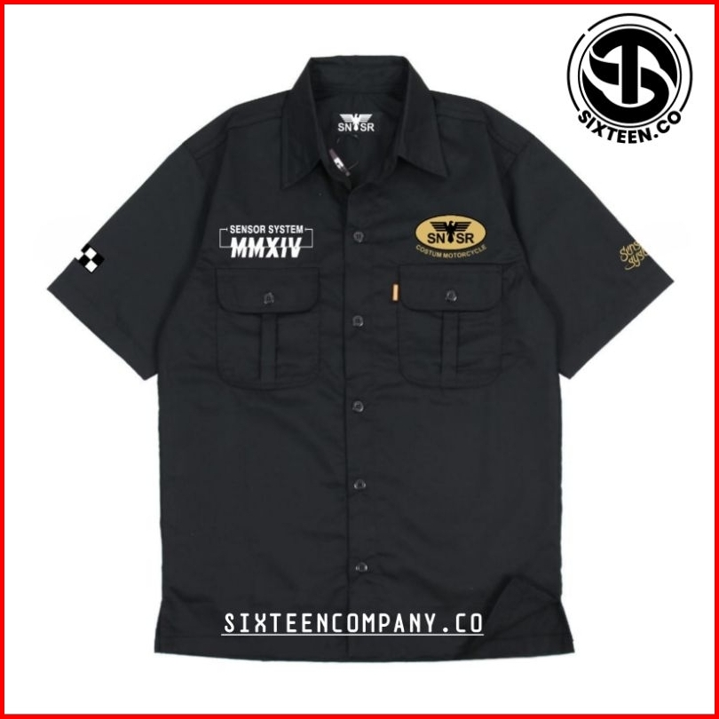 Sixteen - Kemeja Pria Workshirt Premium Kemeja Casual Lengan Pendek Full Bordir Original Sensor