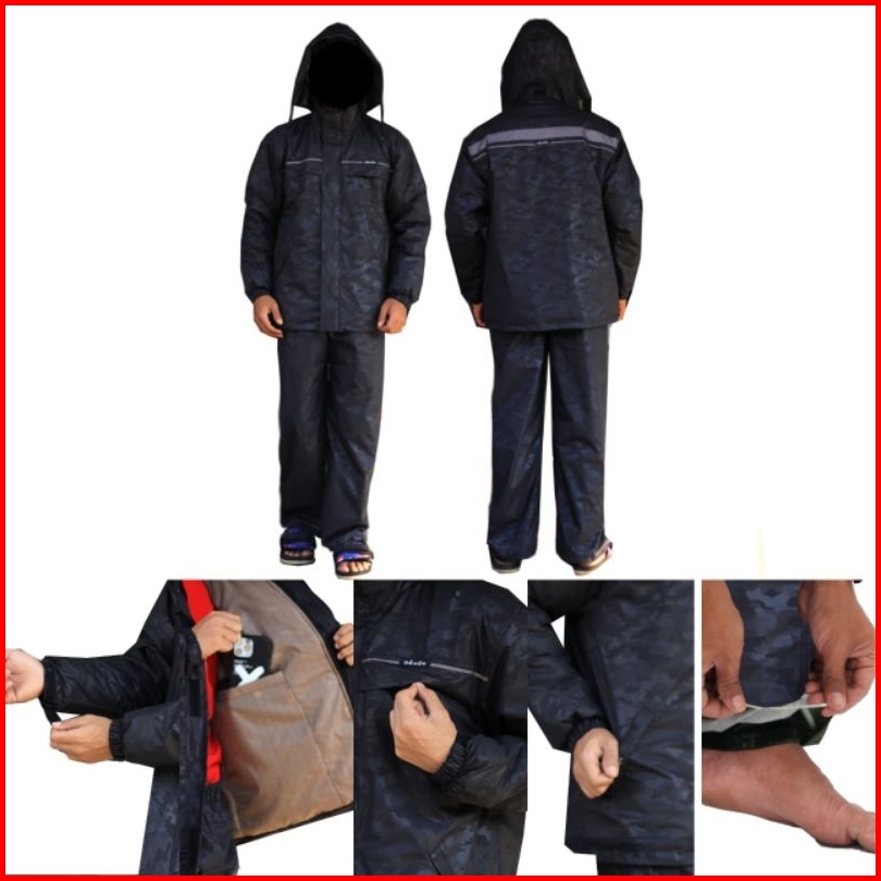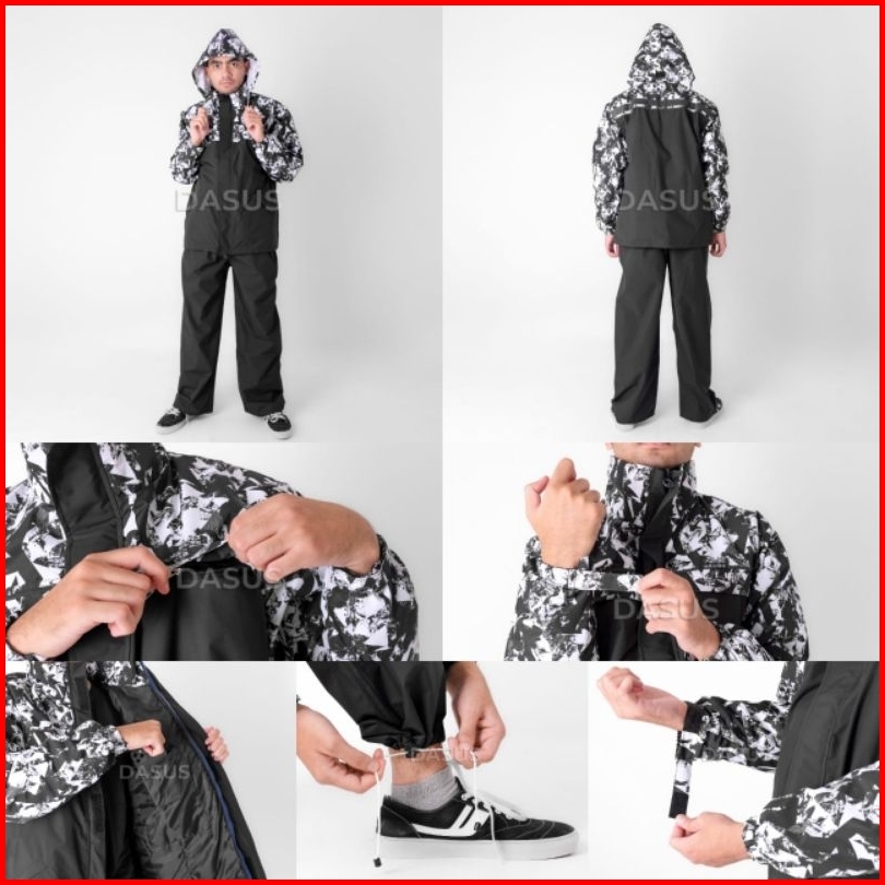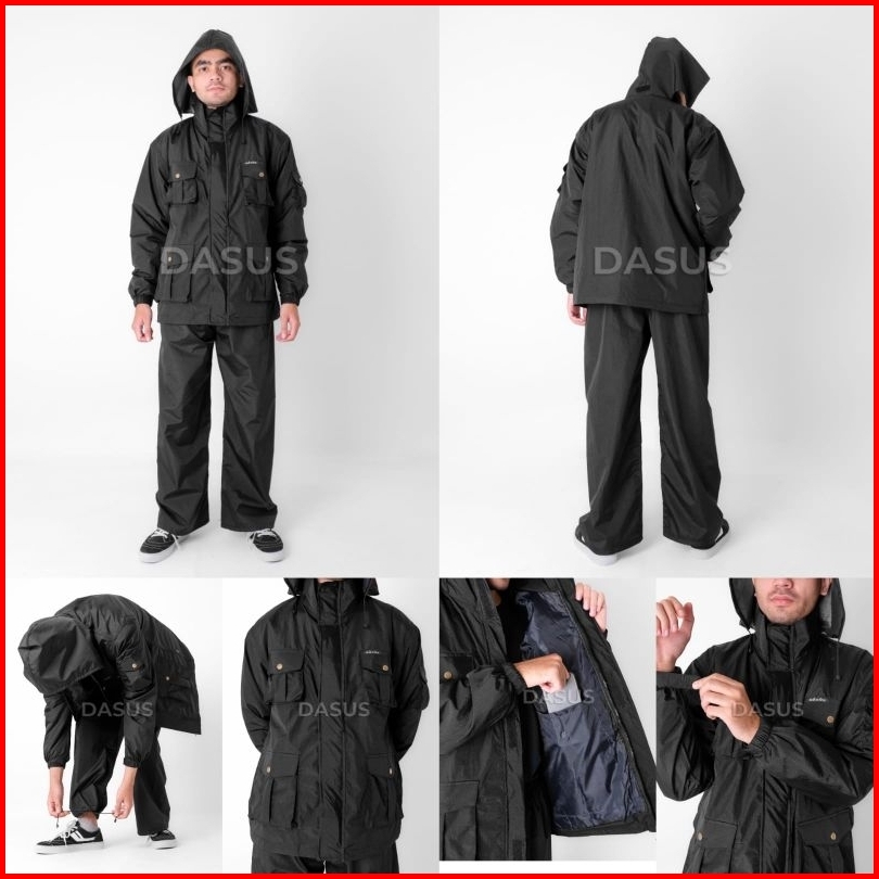 Jas Hujan Jaket Dasus Premium Pria Wanita Kombinasi Anti Robek Tahan Air Taha Angin Bahan Taslan Balon Import