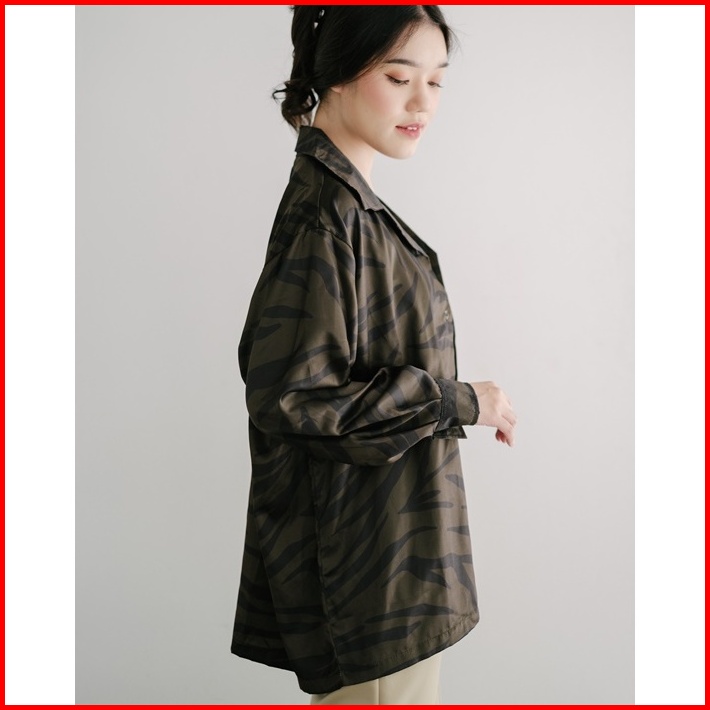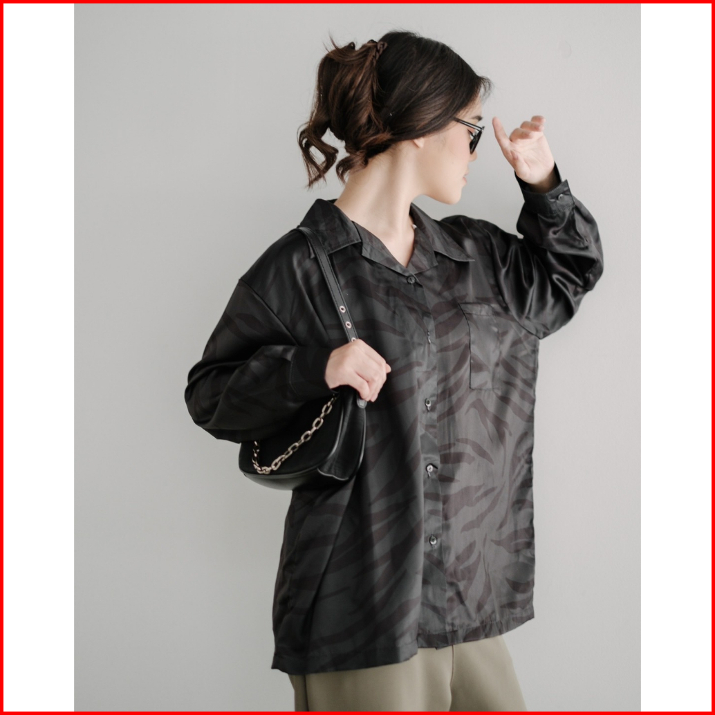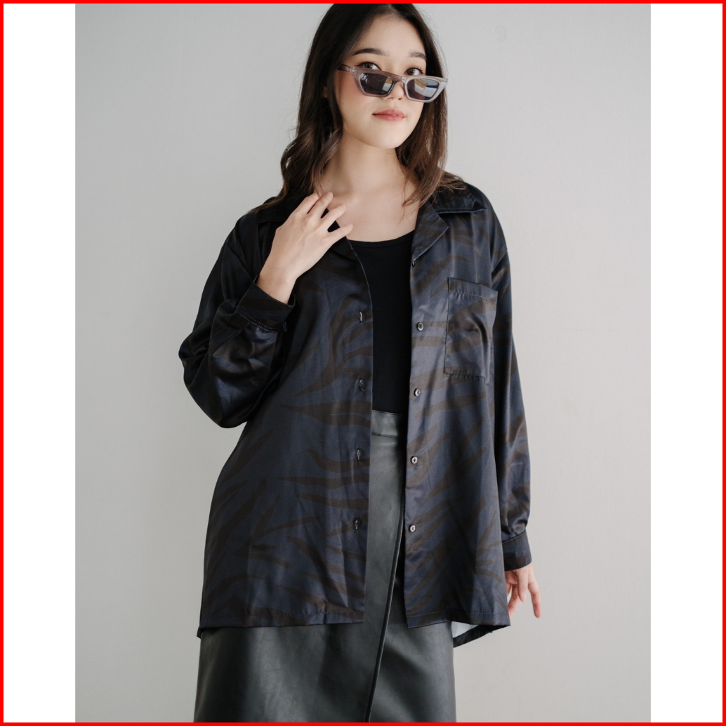 Myrubylicious Tigrish Shirt Kemeja Kemeja Wanita Kemeja Motif Kemeja Satin