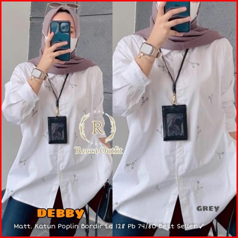 Debby Kemeja Wanita Motif Bordir Bunga Jumbo Oversize Ld 128 Cm Pb 74 80 Cm Bahan Katun Poplin Bordir