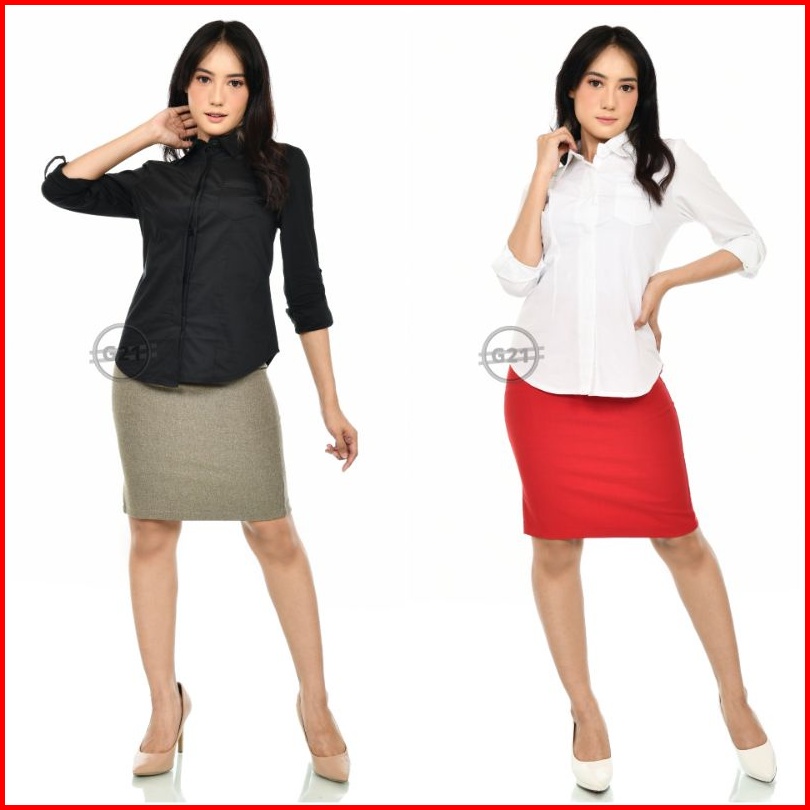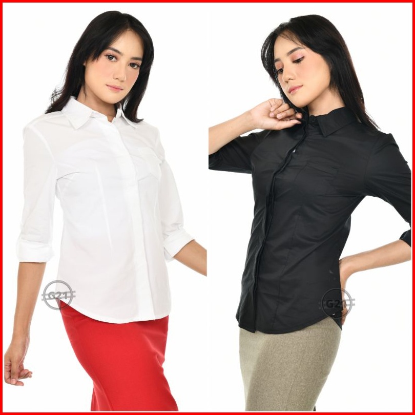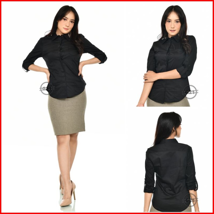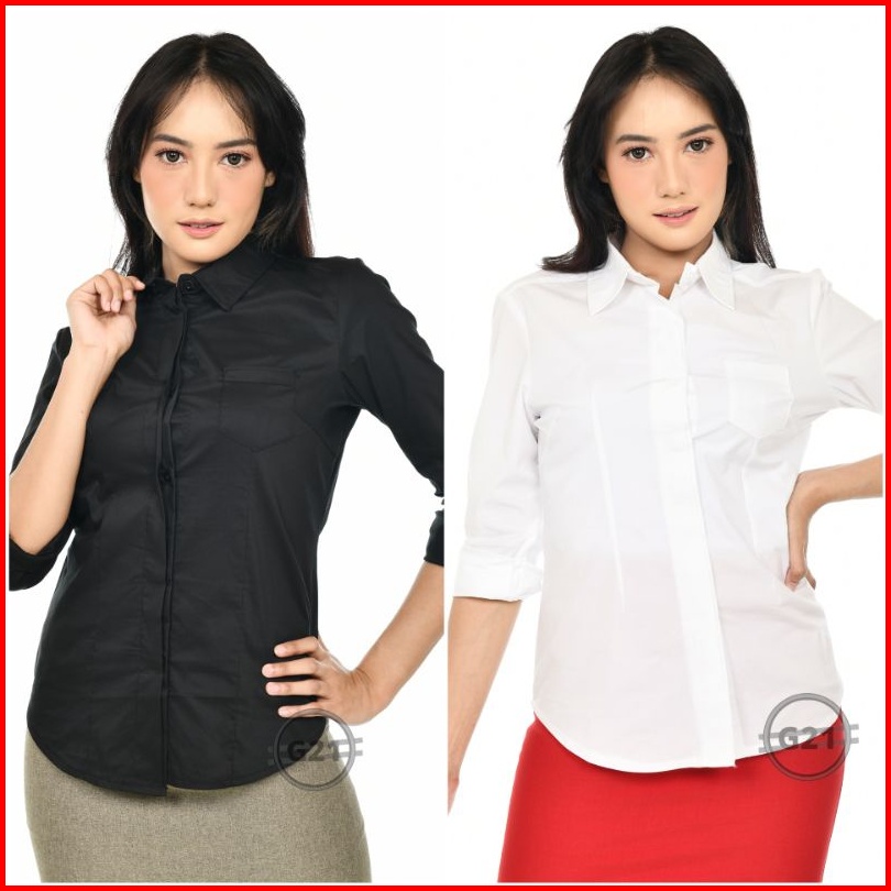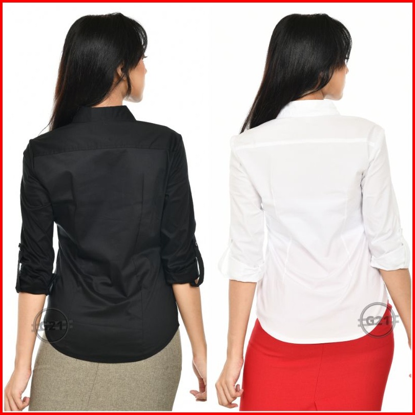 Kemeja Putih Hitam Wanita Kerja Kantor Formal Lengan Panjang