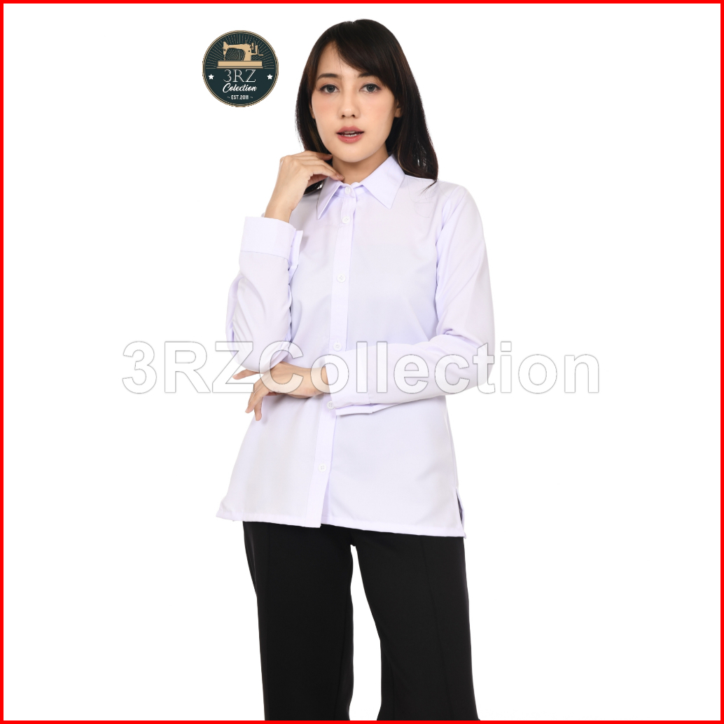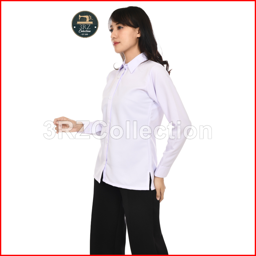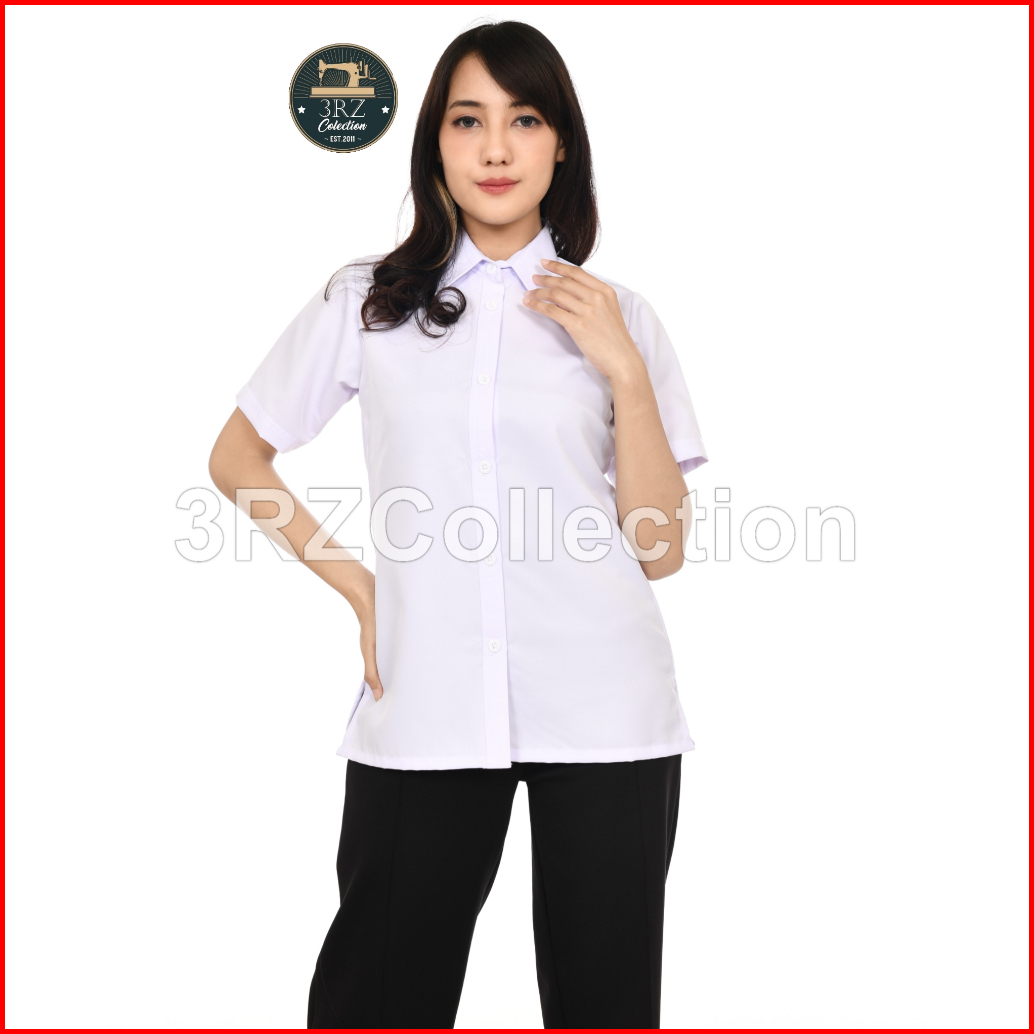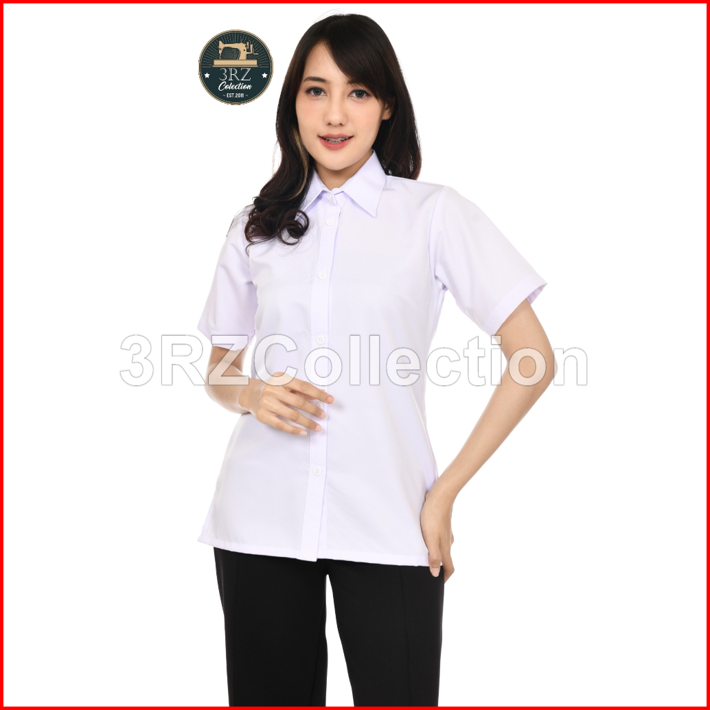 Kemeja Putih Polos Tanpa Saku Wanita Bahan Lembut Lengan Panjang Lengan Pendek