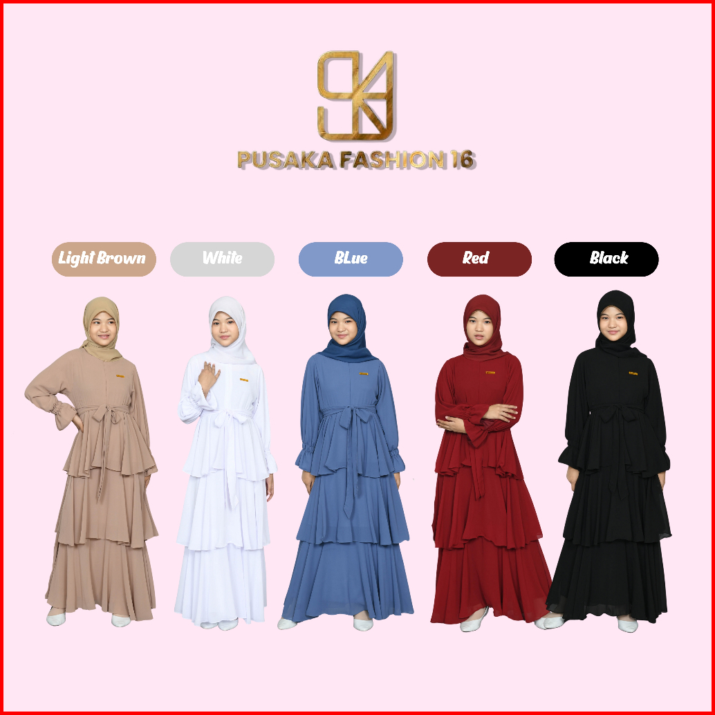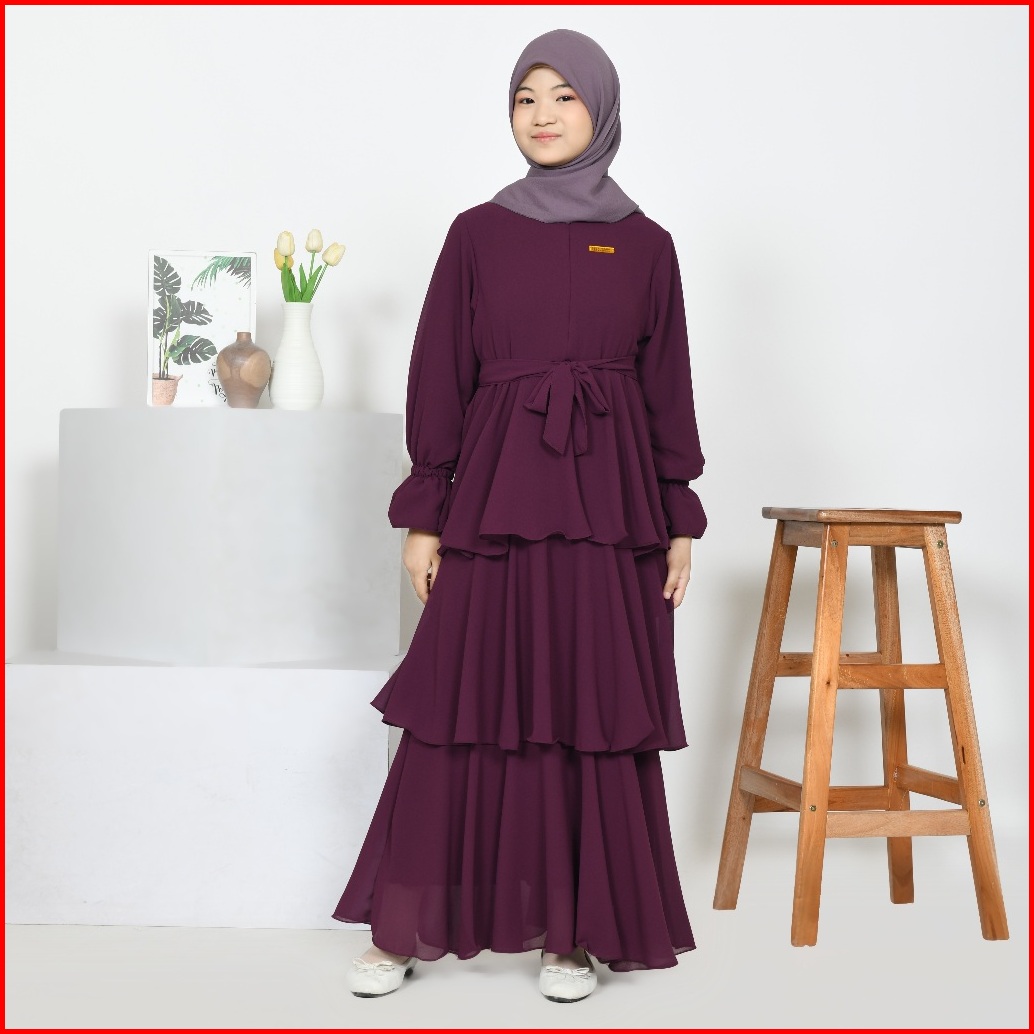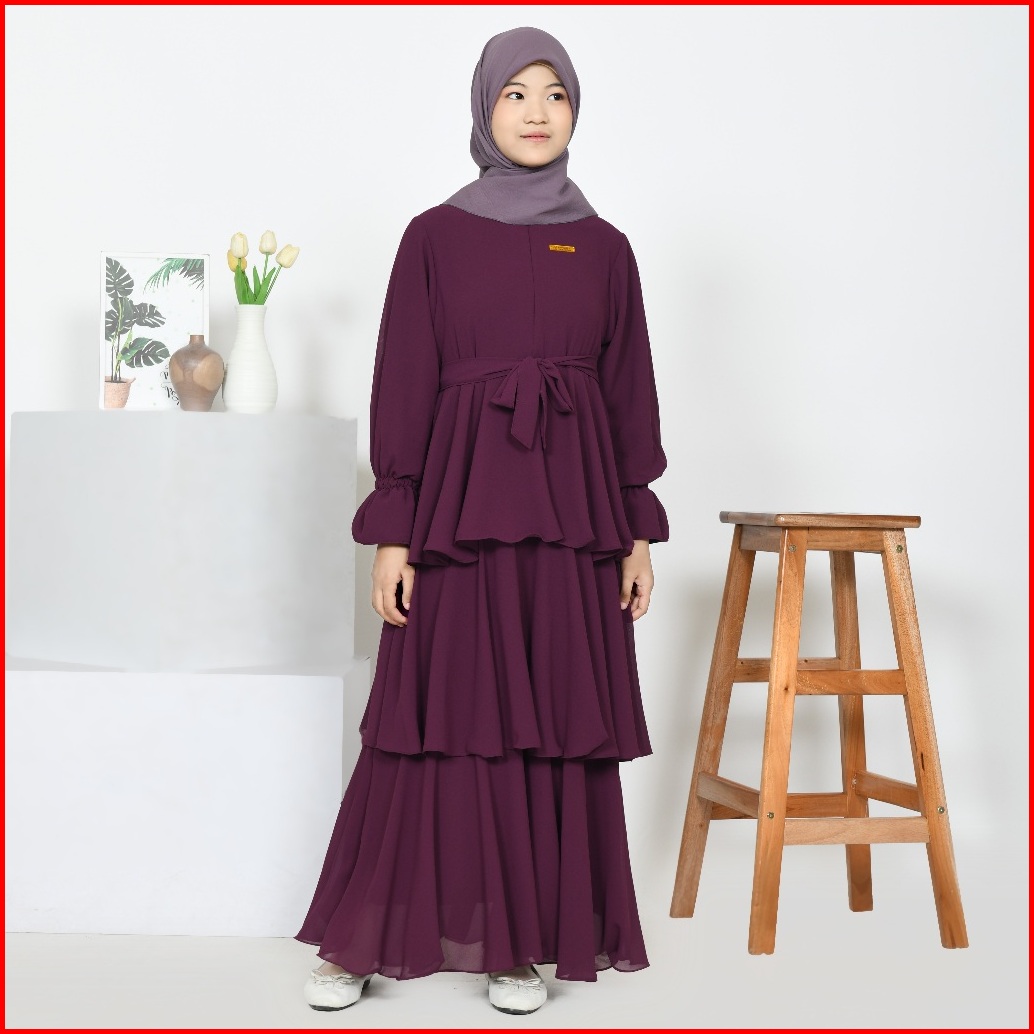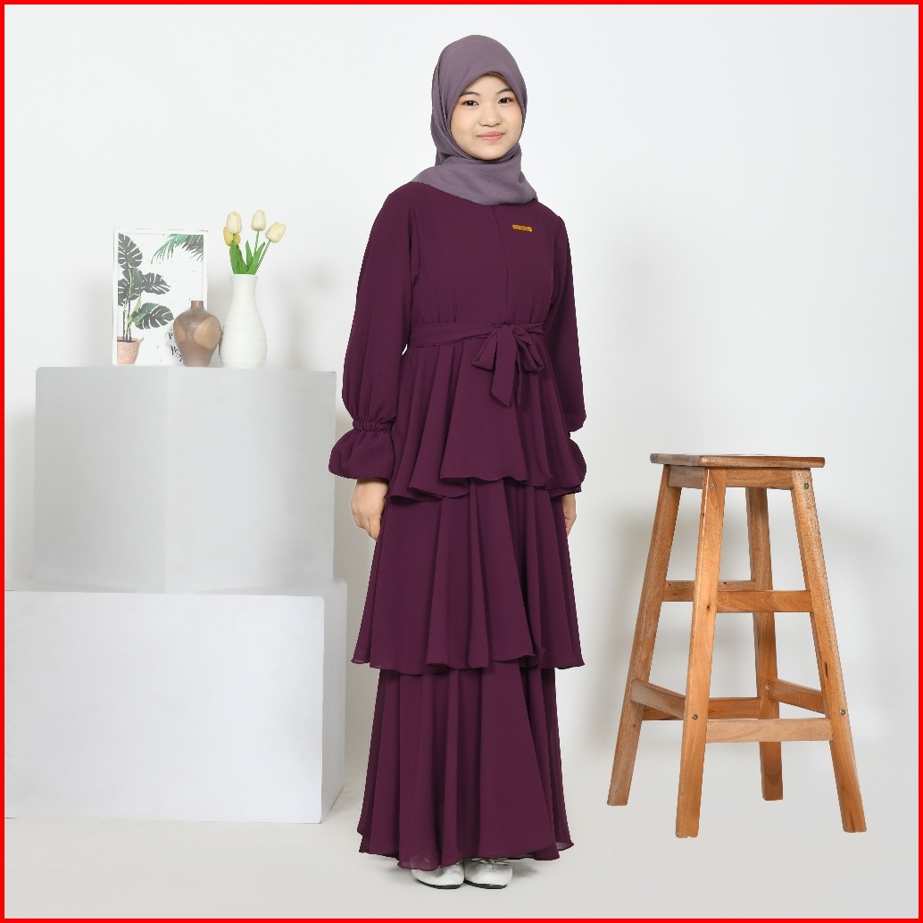 Elsa Gasmis Anak Perempuan Remaja Tanggung Burgundy Ceruty Babydoll Kekinian Long Dress Muslim
