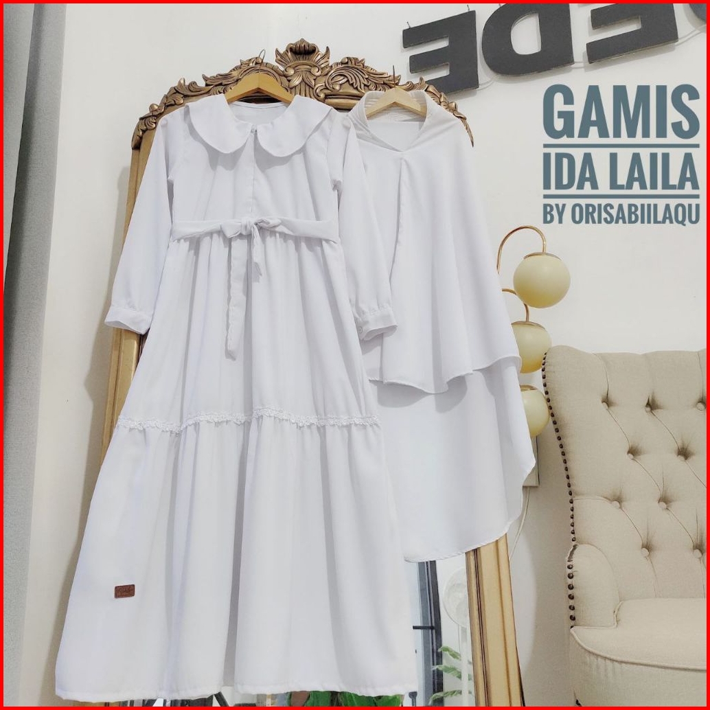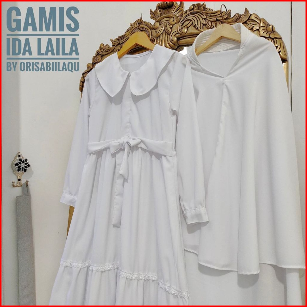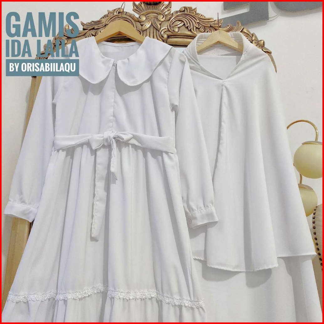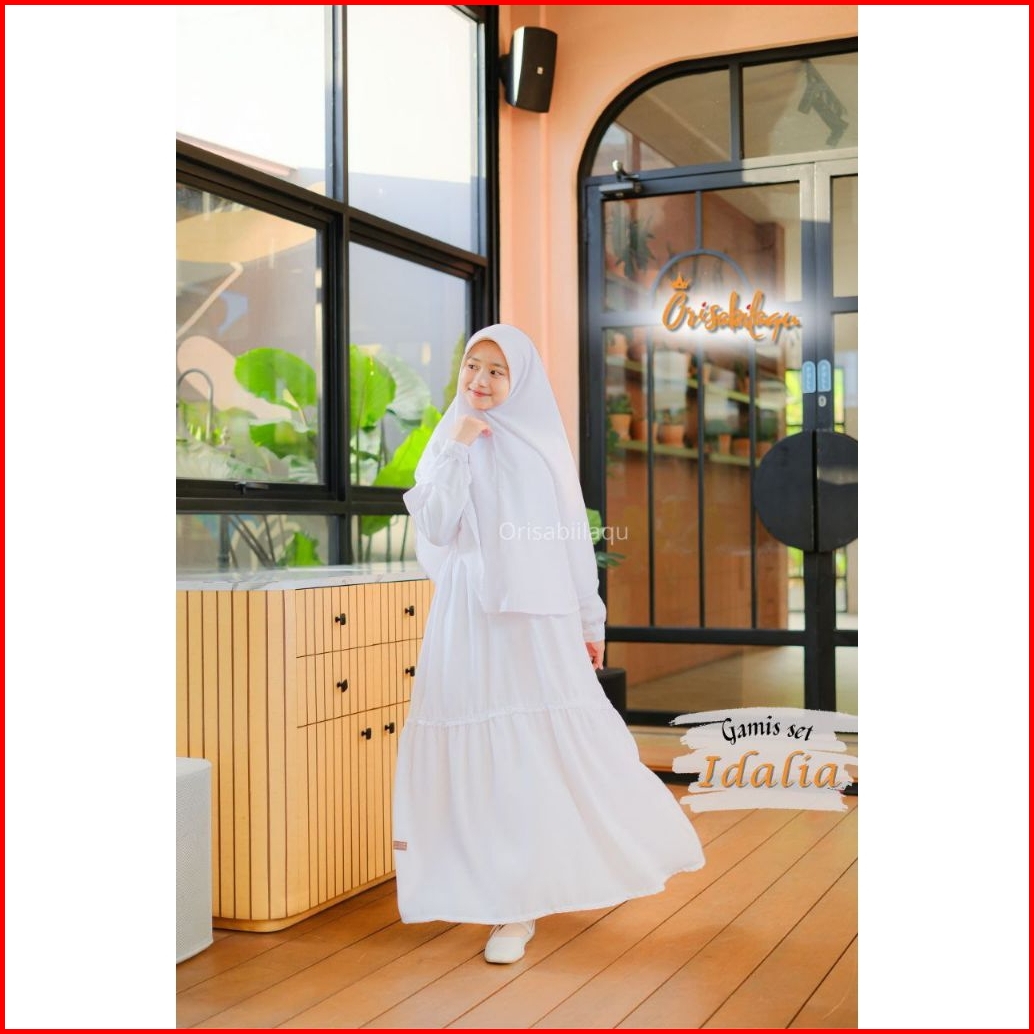 Gamis Putih Polos Set Jilbab Orisabilaqu Gamis Anak Manasik Haji 6-14th
